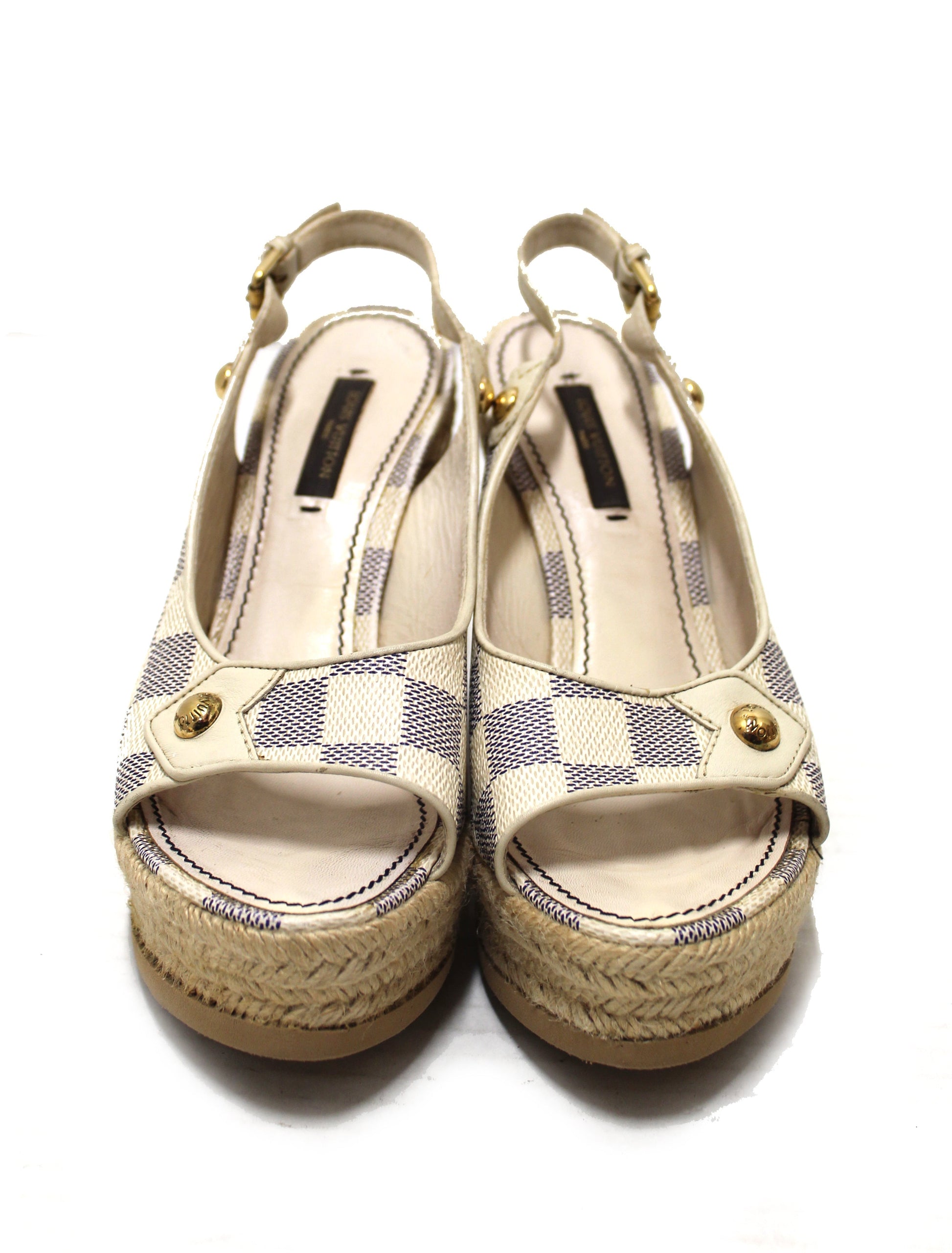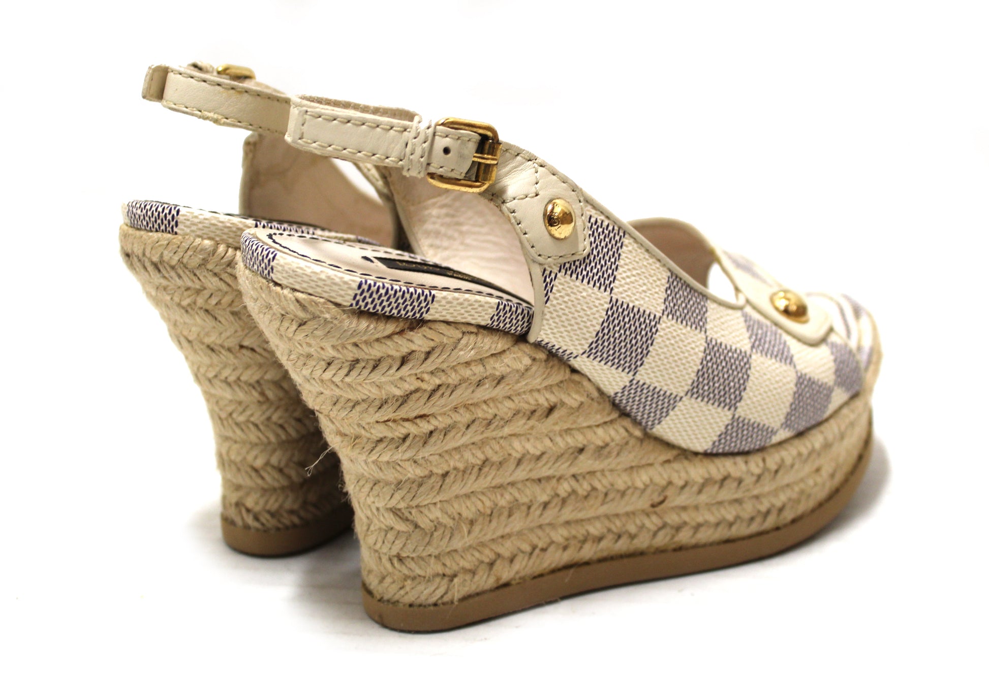 LV Damier Azur Espadrille Wedge Heel Size 35