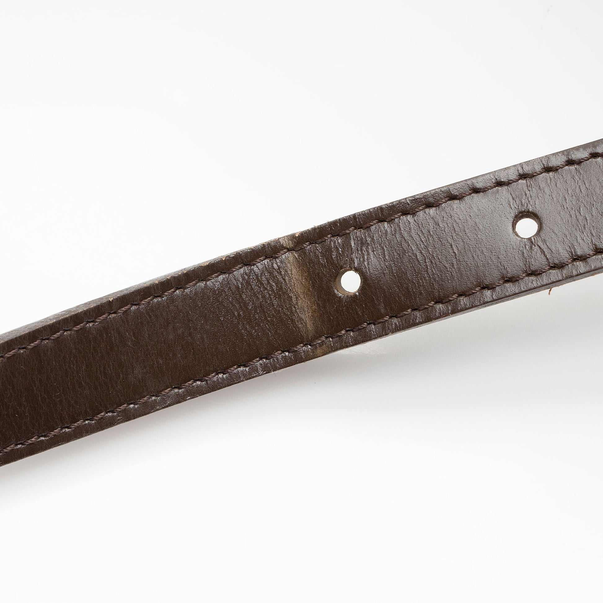 Condition Notes: Light creasing and scuffs throughout exterior leather trim and shoulder strap. Light cracking and wear throughout shoulder strap casing. Scuffs to exterior bottom corner piping. Surface scratches to hardware. Marks and wear throughout interior.