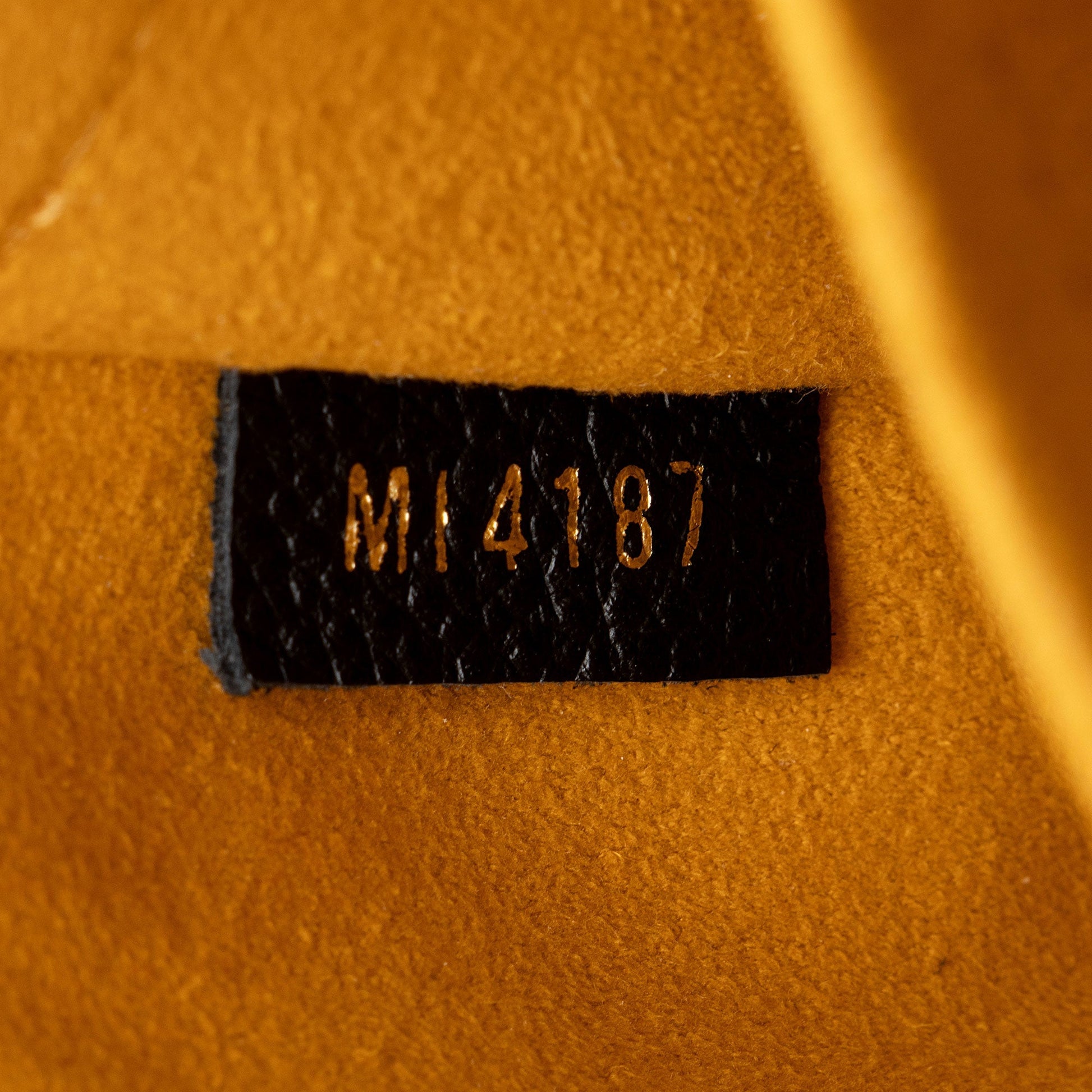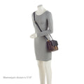 Condition Notes: Light scuffs throughout exterior calfskin. Cracking throughout shoulder strap casing. Light marks throughout exterior coated canvas. Surface scratches to hardware. Marks and darkening throughout interior.