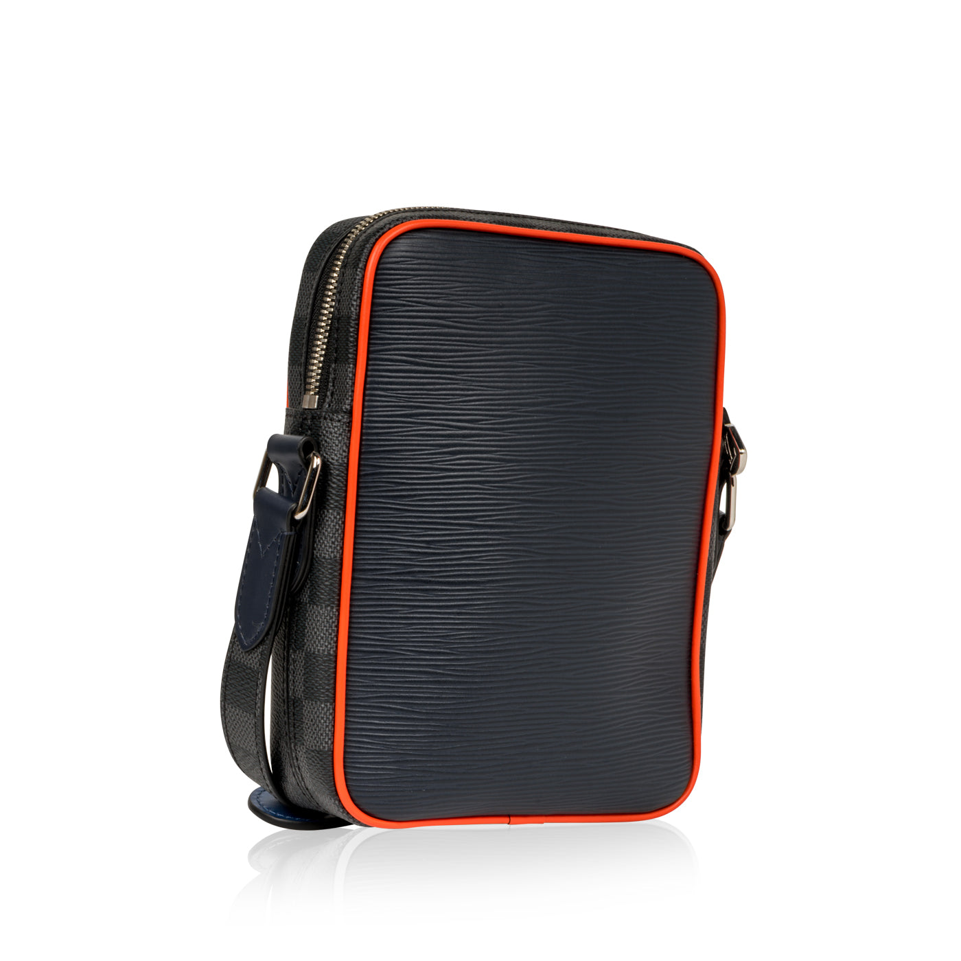 Under the creative direction of Virgil Abloh, Louis Vuitton introduced a new and improved mens cross-body bag. Featuring wrap-around damier graphite canvas, the Danube Slim Crossbody Bag is not your average camera bag. This style of bag was never affiliated with high fashion and usually just served a functional purpose, but Abloh has a knack for re-vamping practical pieces into high fashion collectable items. Crafted in navy and blue Epi leather with red leather trimming, this edgy cross-body is ideal for the modern man with a fashion-forward sense of style. This effortlessly cool bag is a true must-have for any die-hard Aboh fan with a love for high-end streetwear.