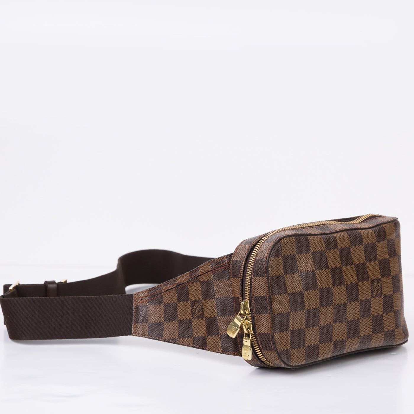 Carefully crafted from Damier canvas, Louis Vuitton presents the Geronimos bum bag. Fashion is in the constant cycle of change, thus the old becomes new again. The bum bag is a prime example of this, as they are now seen everywhere! Louis Vuitton's Geronimos is the ideal bum bag by staying true to its vintage roots but also adding a modern twist with its signature check-pattern. Wear this bag with pretty much anything casual in your wardrobe, from jeans and a basic tee to cropped trousers and a simple top. It can be worn around the waist or across your shoulder, both offering handsfree usage. The Geronimos is the perfect accessory for any modern young woman with a love for a vintage aesthetic and a fashion forward sense of style.