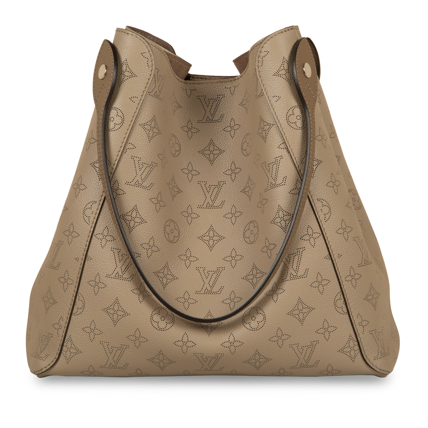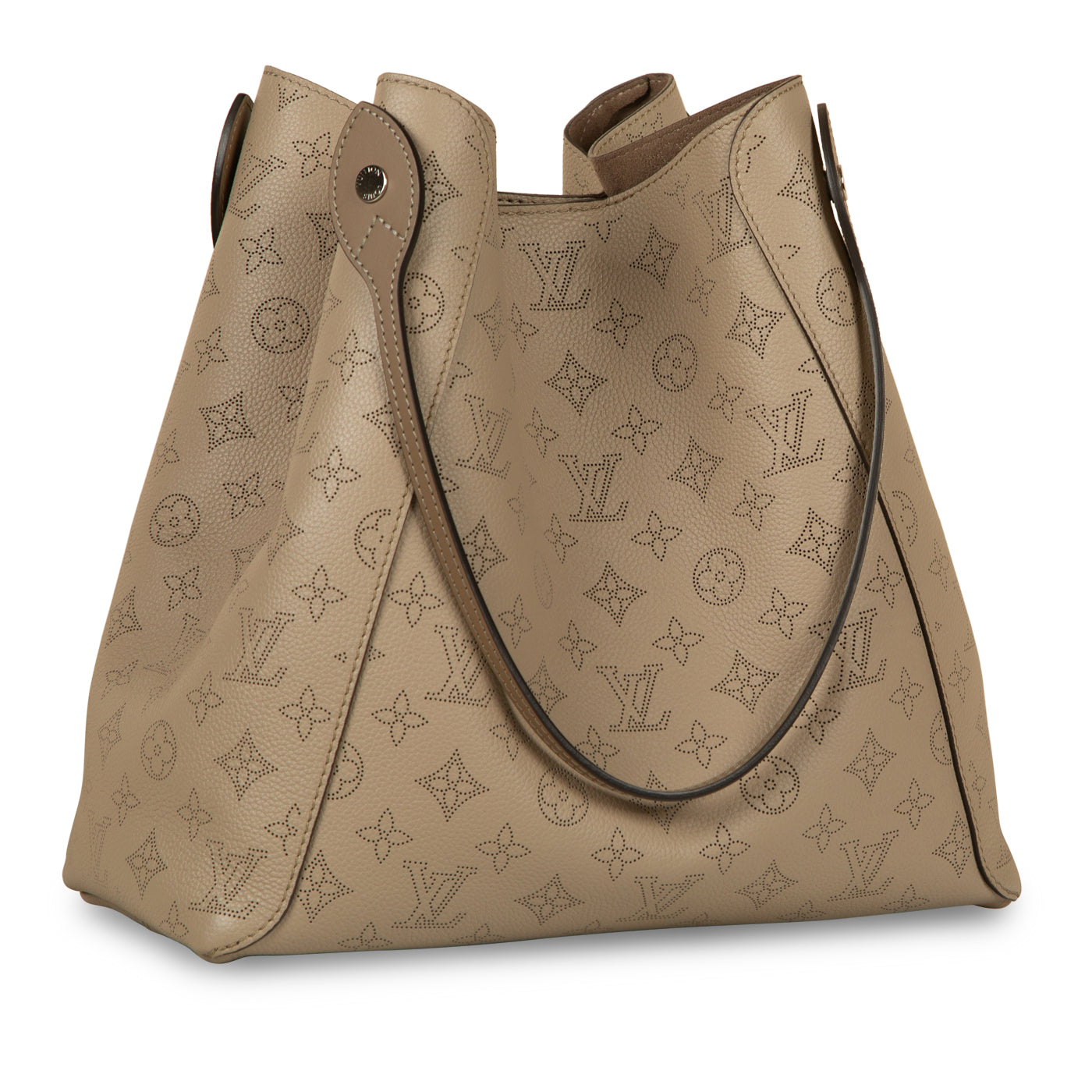 - Beige perforated monogram Mahina calfskin leather