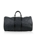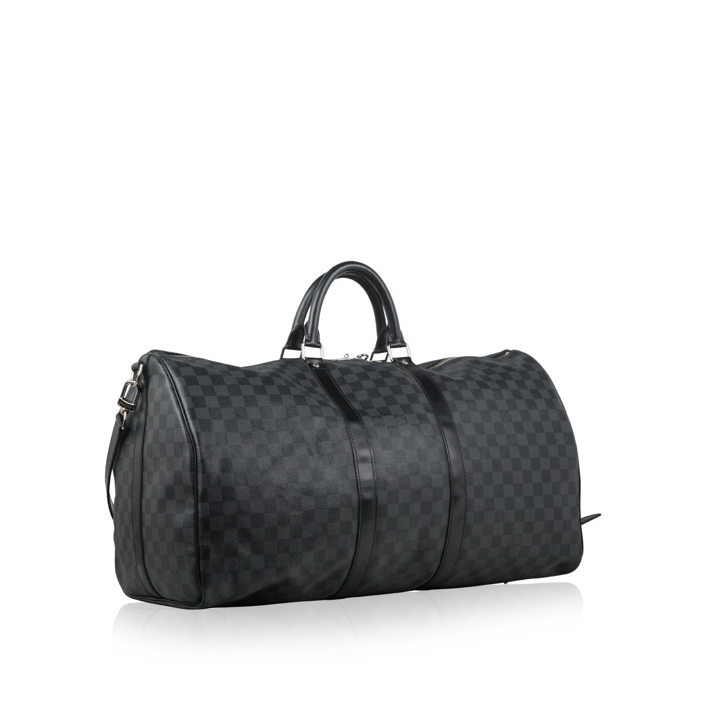 Louis Vuitton presents their signature Keepall bag, the perfect travel accessory for both men and women. Carefully crafted in the brand's iconic Damier Graphite canvas with black leather trimming, top handles and shoulder strap, the Keepall is sleek and sophisticated. Large and spacious, making it easy to carry your whole world with you wherever you go, the Keepall is also extremely lightweight. It's the perfect travel companion and a necessary addition to any luxury bag collection, especially luggage. The perfect mix between fashion and function, it's practical as well as stylish. Wherever you go, the LV Keepall will make sure you travel in style.