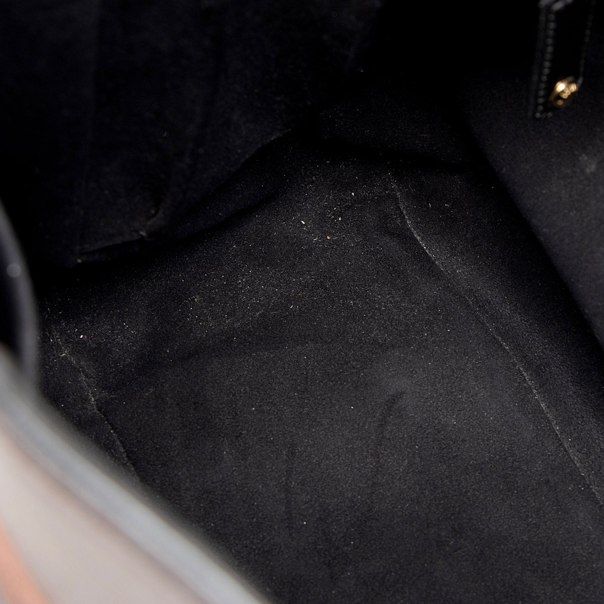 Condition Notes: Scuffs and light marks throughout exterior leather trim and handle. Surface scratches and tarnishing to hardware. Light marks and wear throughout interior.
