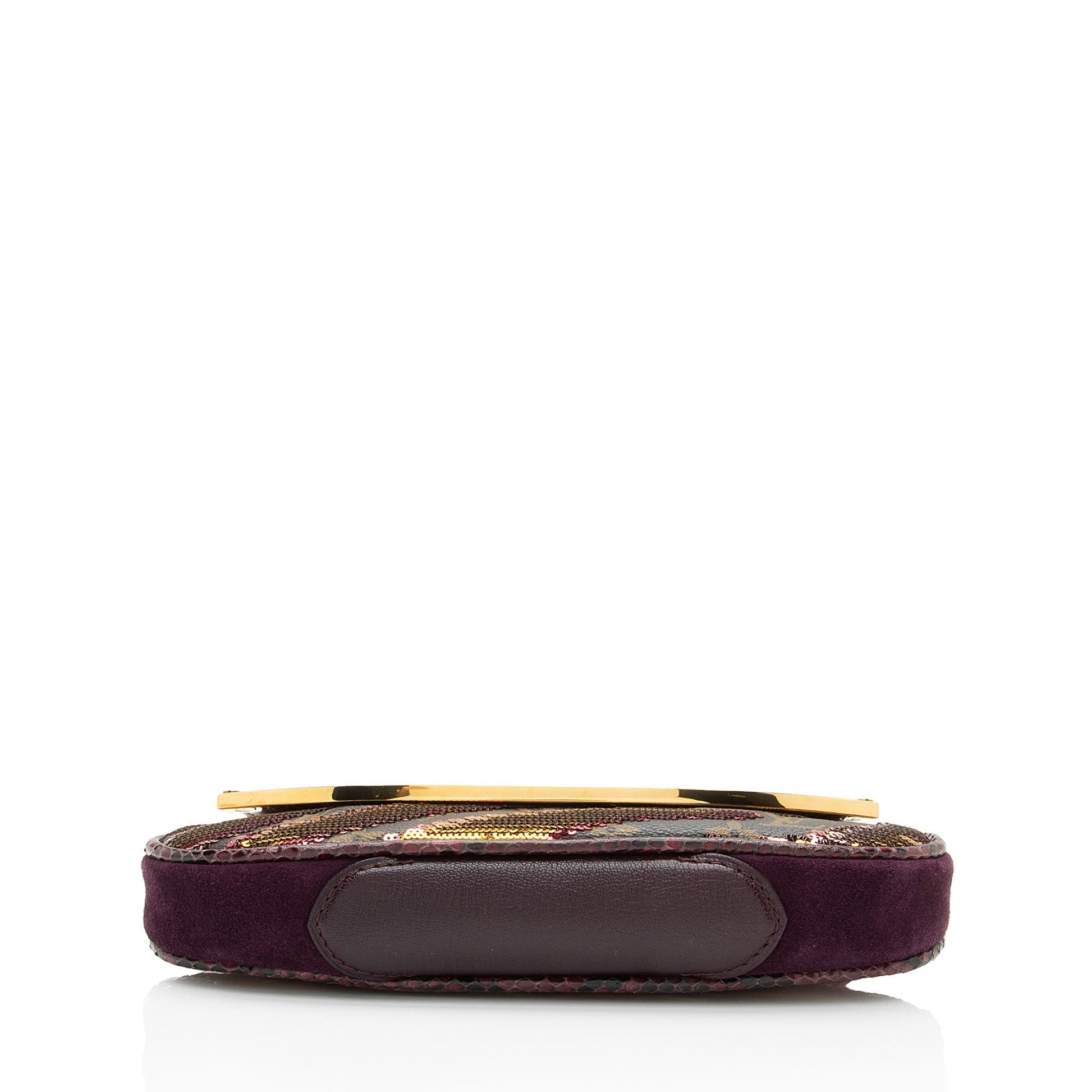 Type of Material: Coated Canvas, Crystal, Leather, Python Embossed Leather, Sequins, Suede