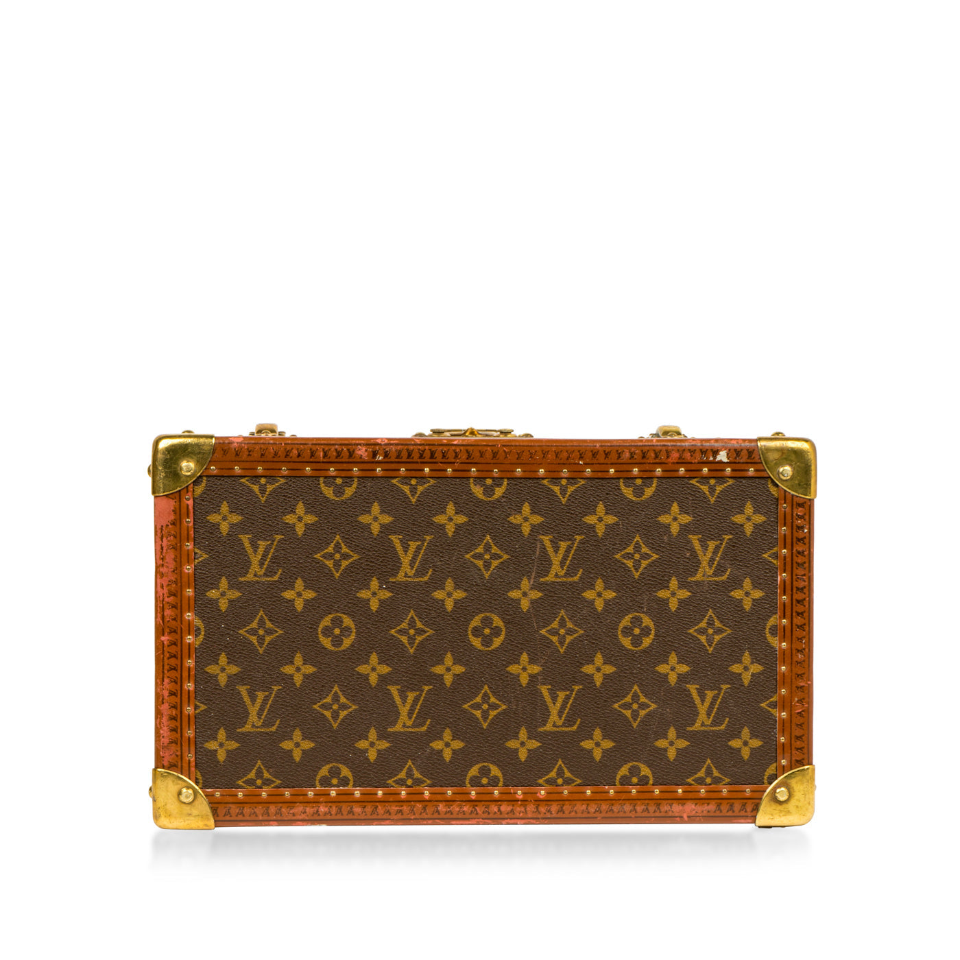 A rare piece from Louis Vuitton, this vintage vanity case is an absolute must have for any LV lover or vintage timepieces in general. Though of course it's ideal if you want to actually use it as a vanity, but we adore this piece as an interior decoration piece. Rich in history, this classic vanity is a unique accessory that you will never fall out of love with. With its signature monogram printed embossed throughout, rustic brass hardware and vintage brown LV logo trimming, this piece truly is special. Always sleek, always chic - this vanity will never go out of style.