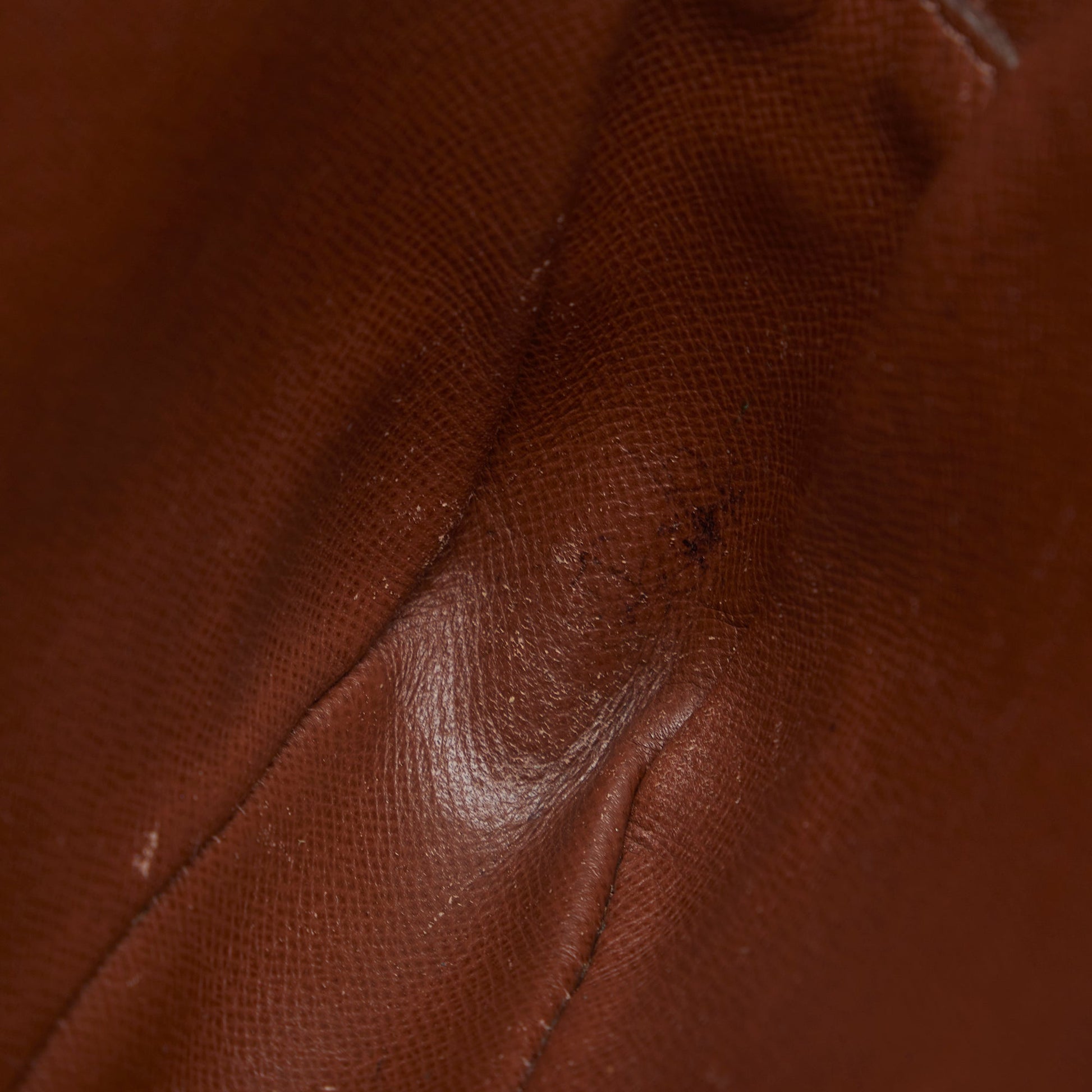 This handy vintage Louis Vuitton Marly Dragonne PM is crafted from brown Monogram canvas and features brown vachetta leather trim and gold detailing. At the top opening, the Bag secured via a zipper closure. The Bag has a brown Monogram canvas loop for safe transport in the hand.