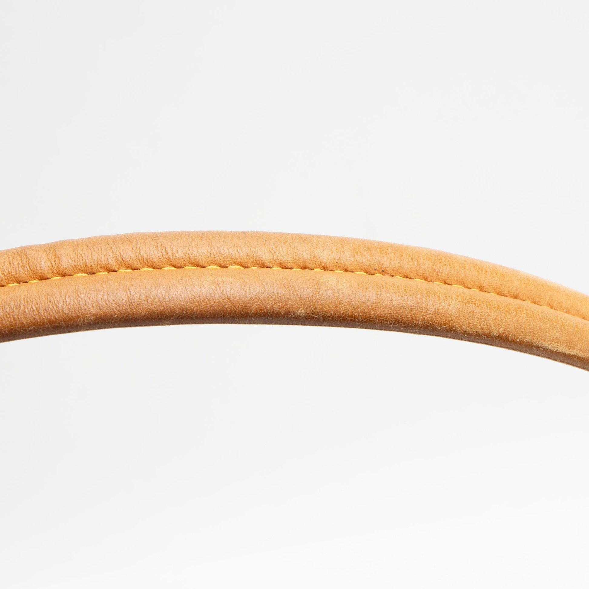 Condition Notes: Heavy darkening, marks, and scuffs throughout exterior leather trim and handle. Visible stretching and wear to handle bases. Visible scuffs to exterior bottom corners. Light scuffs and wear throughout exterior coated canvas. Moderate surface scratches to hardware. Marks and darkening throughout interior.