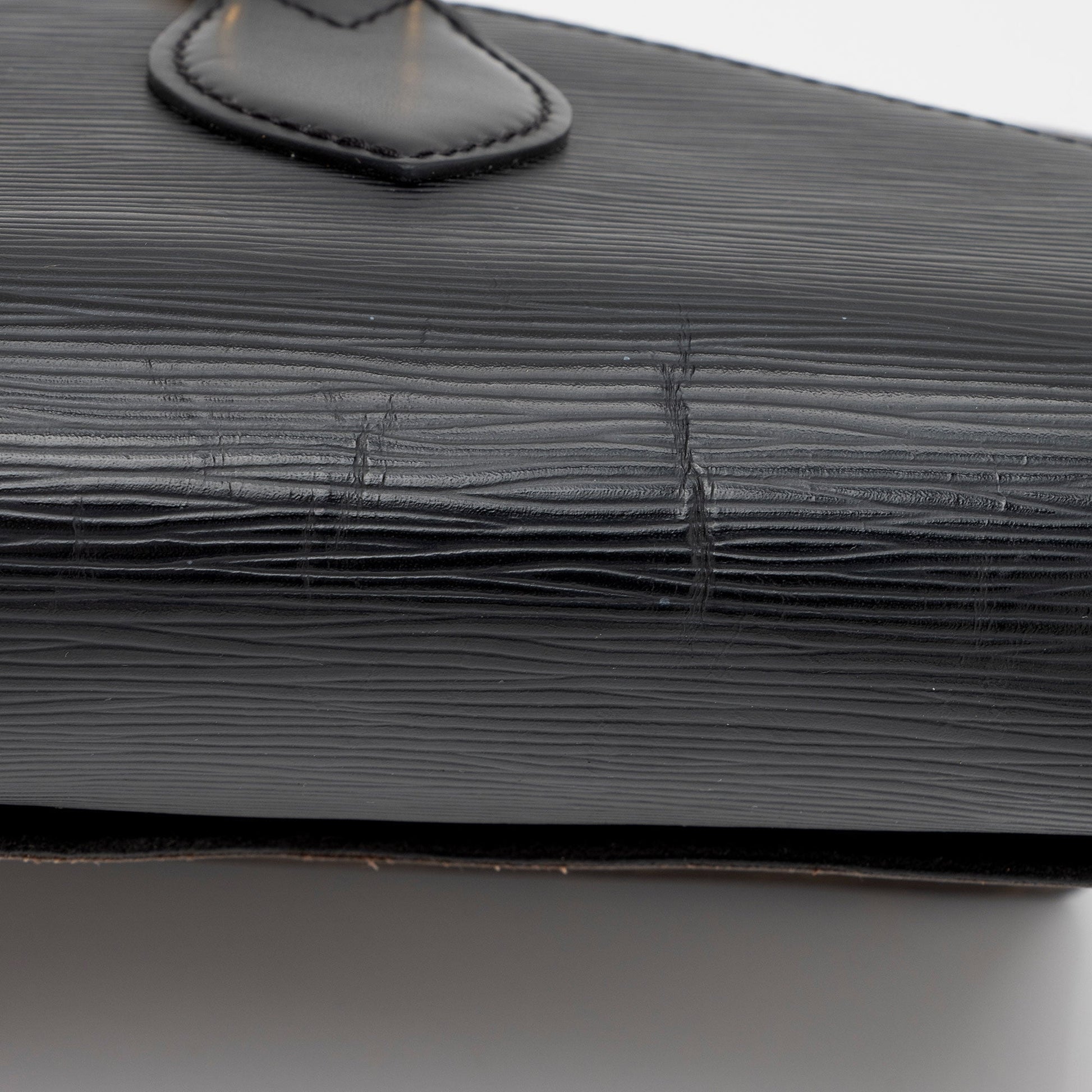 Condition Notes: Moderate scuffs and wear throughout exterior epi leather. Scuffs to exterior bottom corners. Minor scuffs and wear throughout exterior coated canvas. Visible creasing and wear throughout shoulder strap. Cracking and wear to shoulder strap base casing. Moderate surface scratches and light tarnishing to hardware. Light marks and scuffs throughout interior.