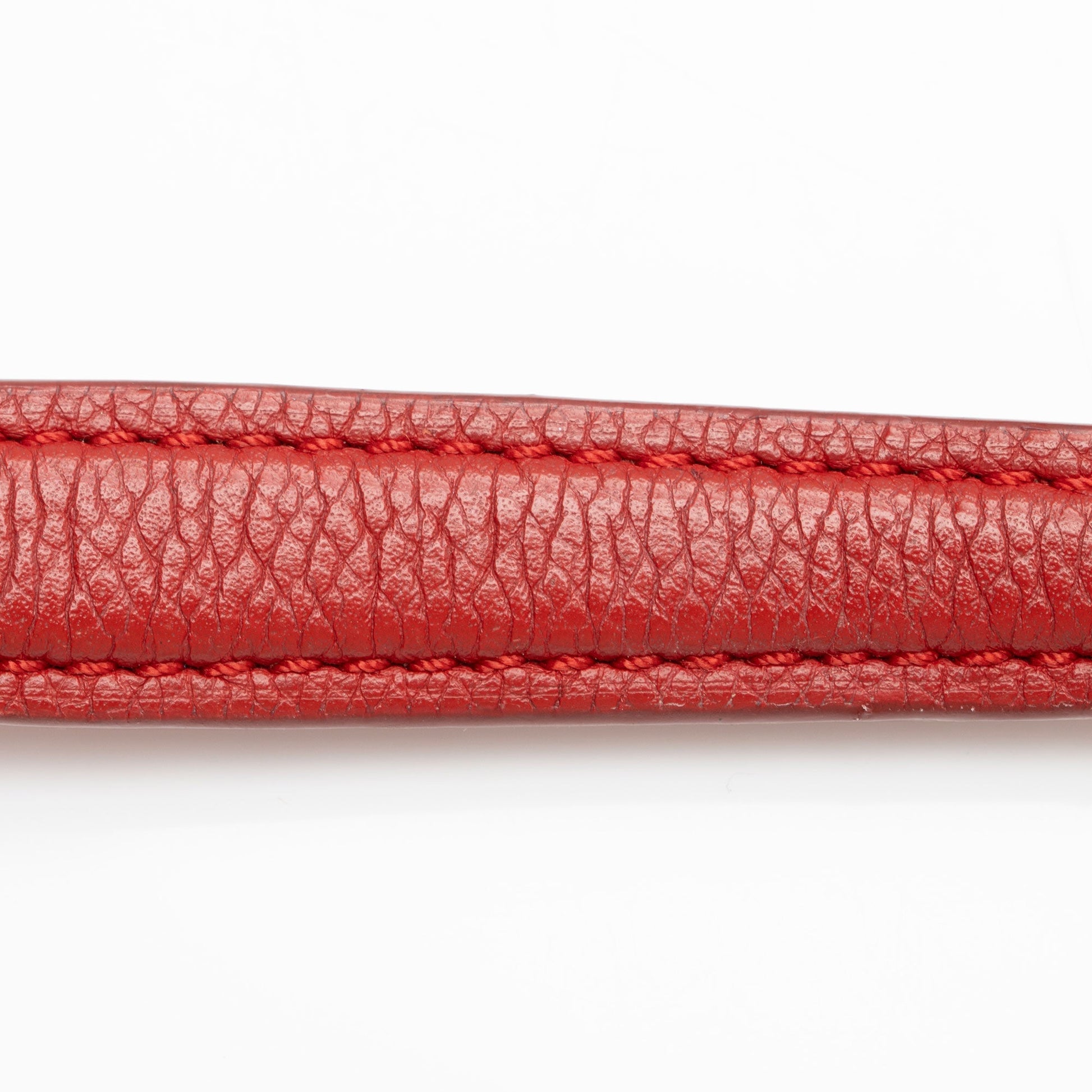 Condition Notes: Darkening and wear to exterior bottom corners. Light marks and darkening throughout exterior. Light creasing and darkening throughout leather on shoulder strap. Moderate surface scratches and light tarnishing to hardware. Darkening, marks, and scuffs throughout interior. Light smoke odor.