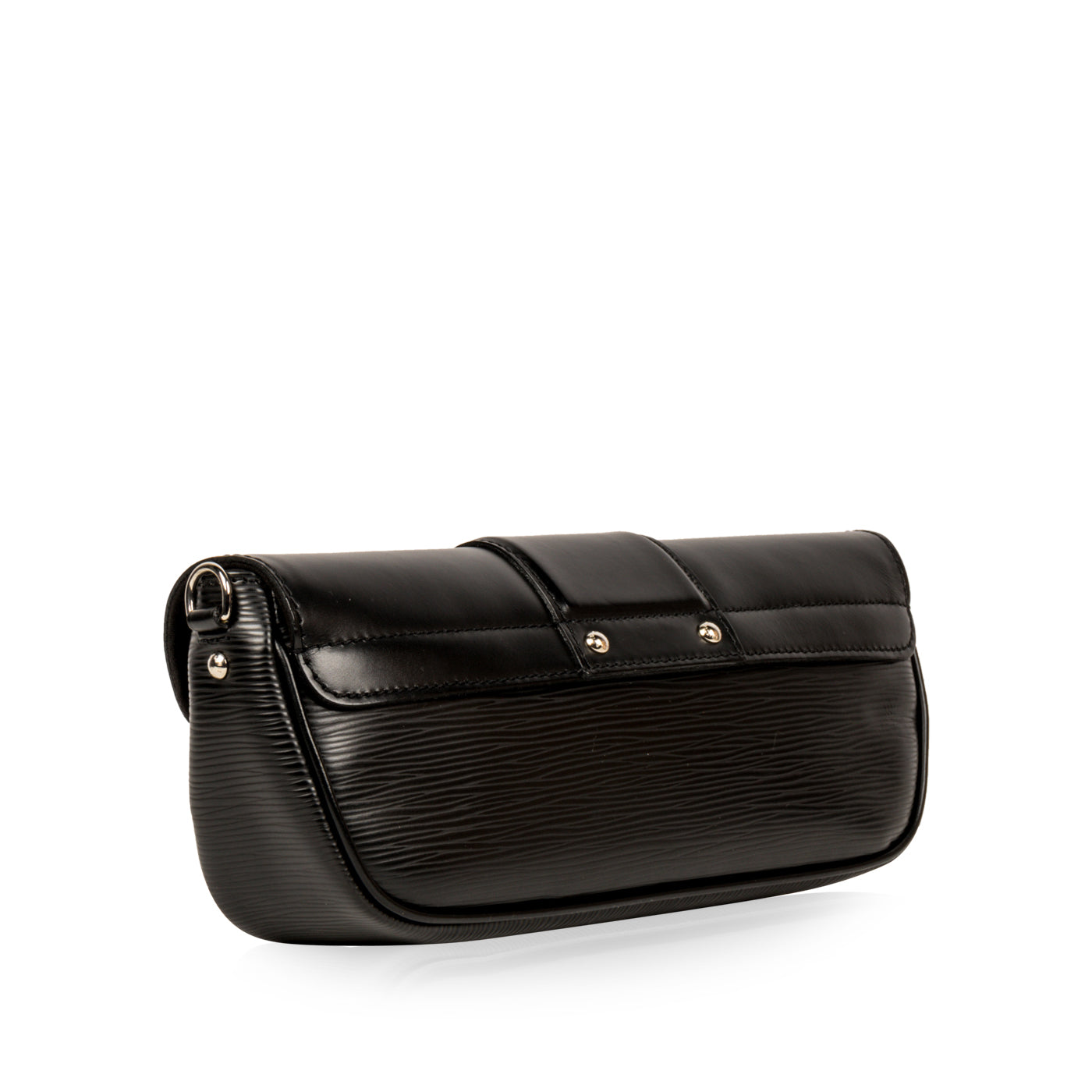 The Louis Vuitton Black Epi Montaigne Clutch is a wonderful addition to your vintage collection of retro luxury. The bold and chunky shiny hardware features and textured epi leather makes it the perfect accessory for your night out. With three ways to wear it, the Montaigne clutch bag is as versatile as it is fashionable – whether it is worn over the shoulder, carried as a clutch or used as a wristlet.