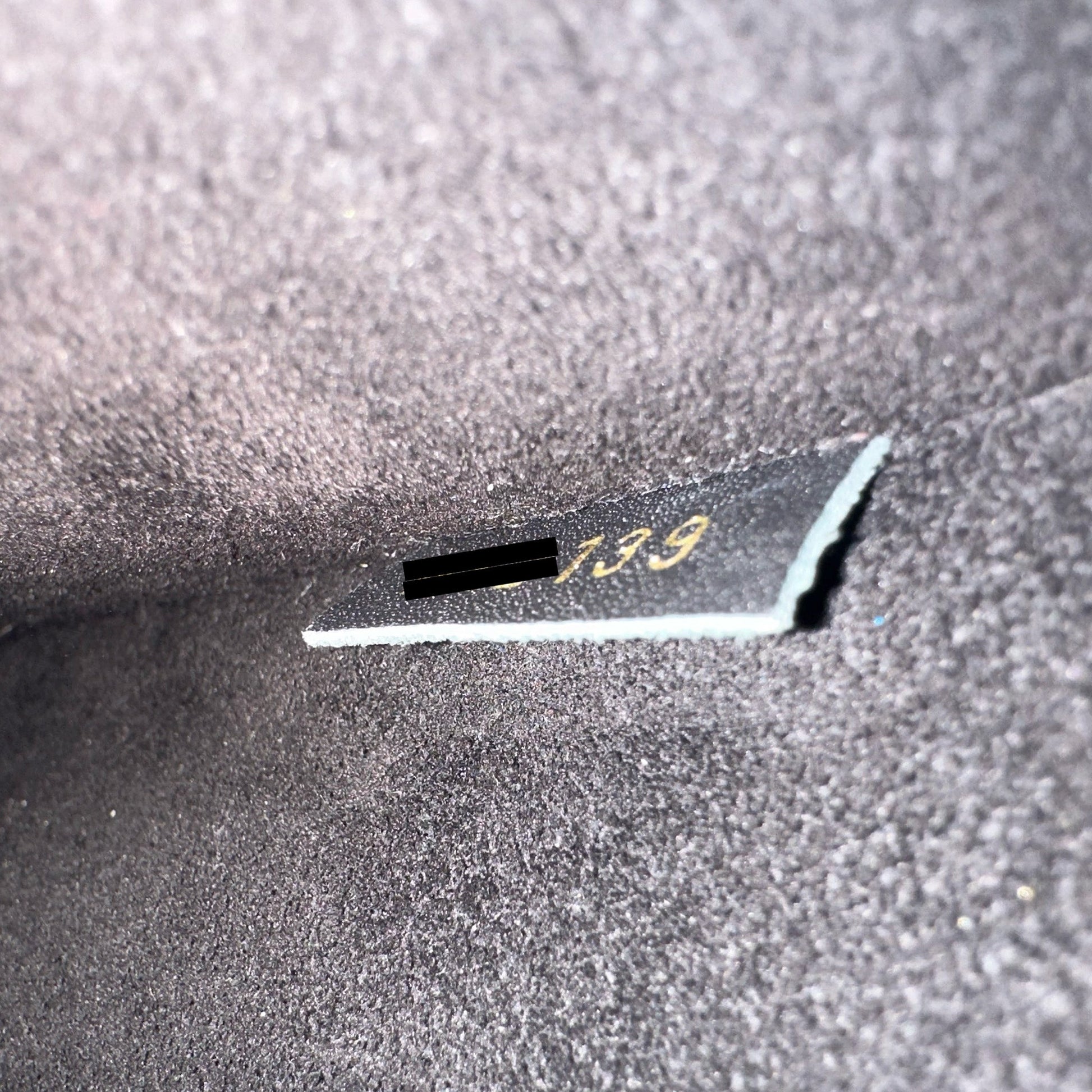 Used (This item is in fair condition with cracking on edge, slight scratches on hardware, slight use of inside. )