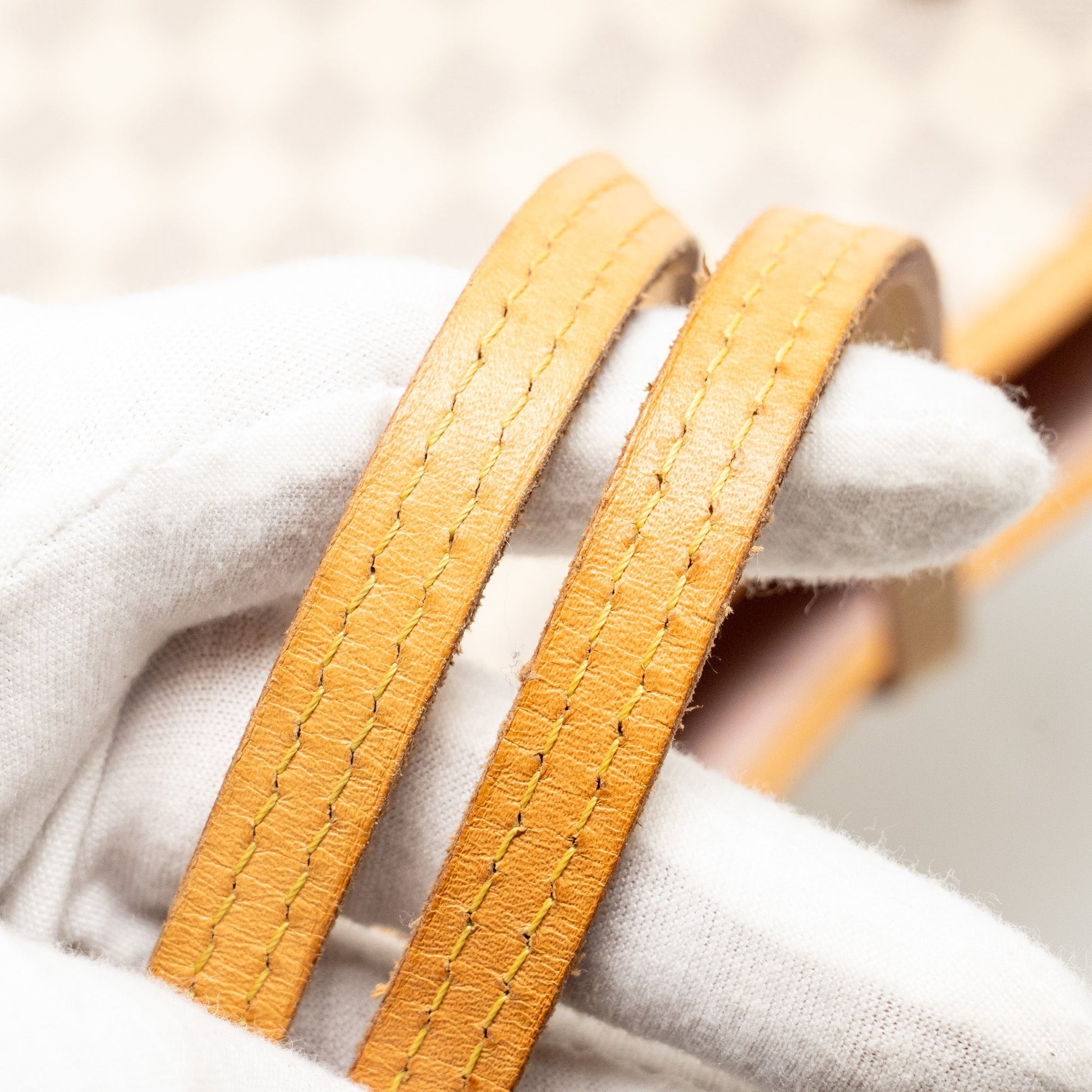 Well Used (This item is in very good condition with slight marks and colour transfer on beige leather, minor rubbing on corners and edges, slight scratches on leather and hardware, sign of use inside. )