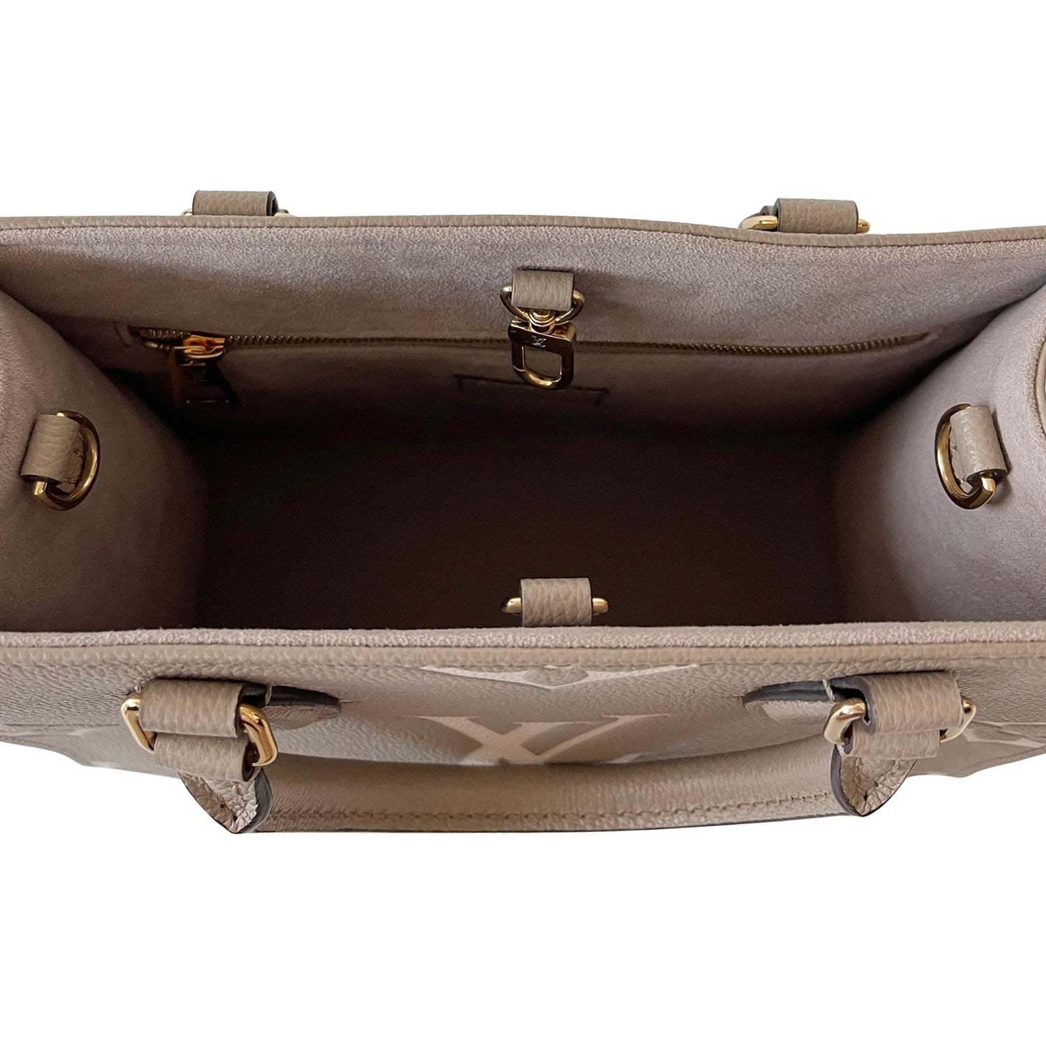 Description: Authentic New Louis Vuitton Onthego PM Tote Bag in Tourterelle Beige/Cream Monogram Empreinte Leather.