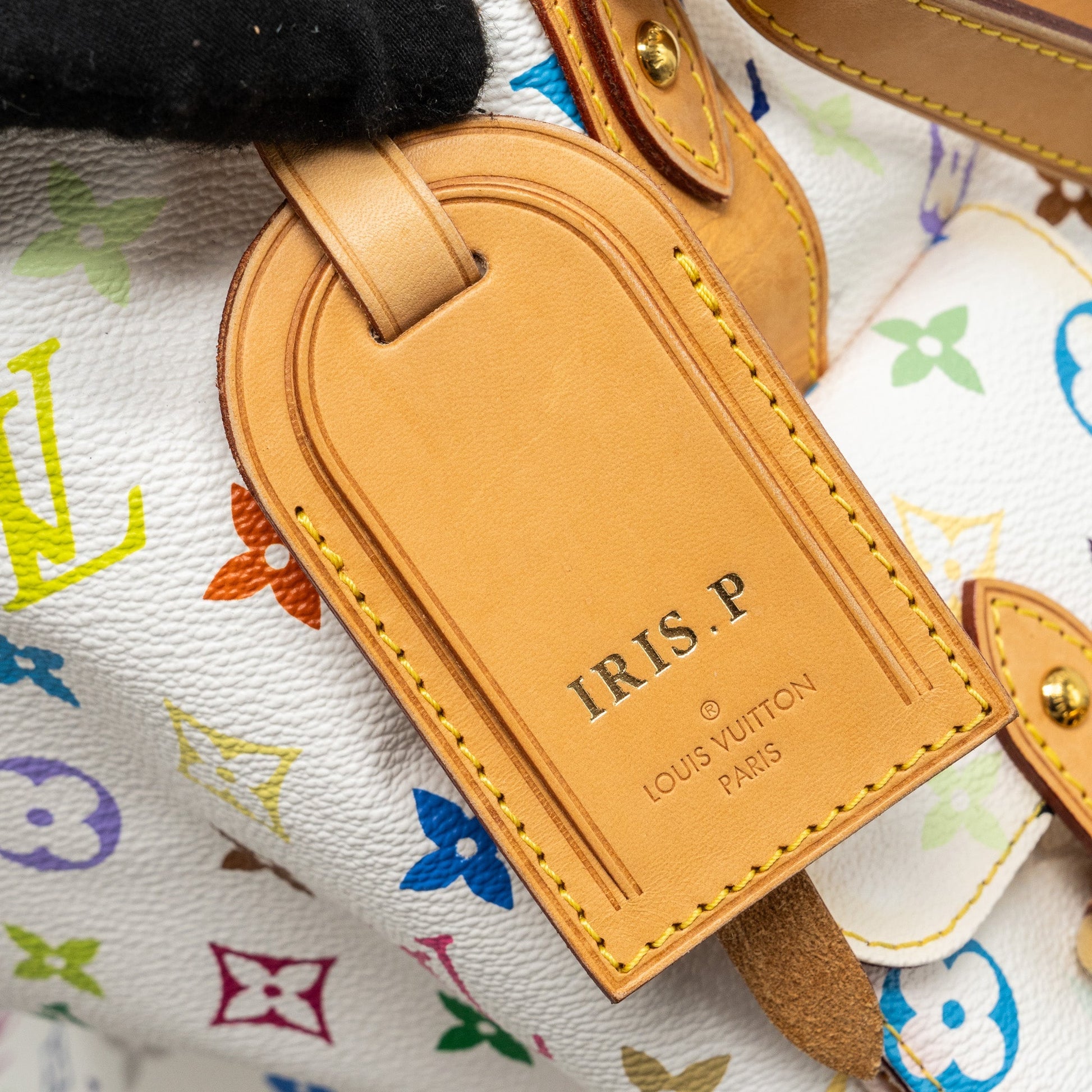 With initial “IRIS.P” on the leather tag.