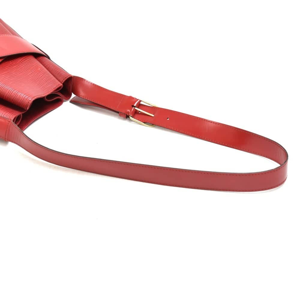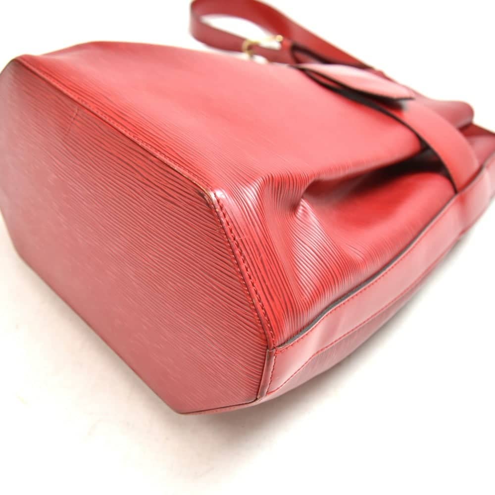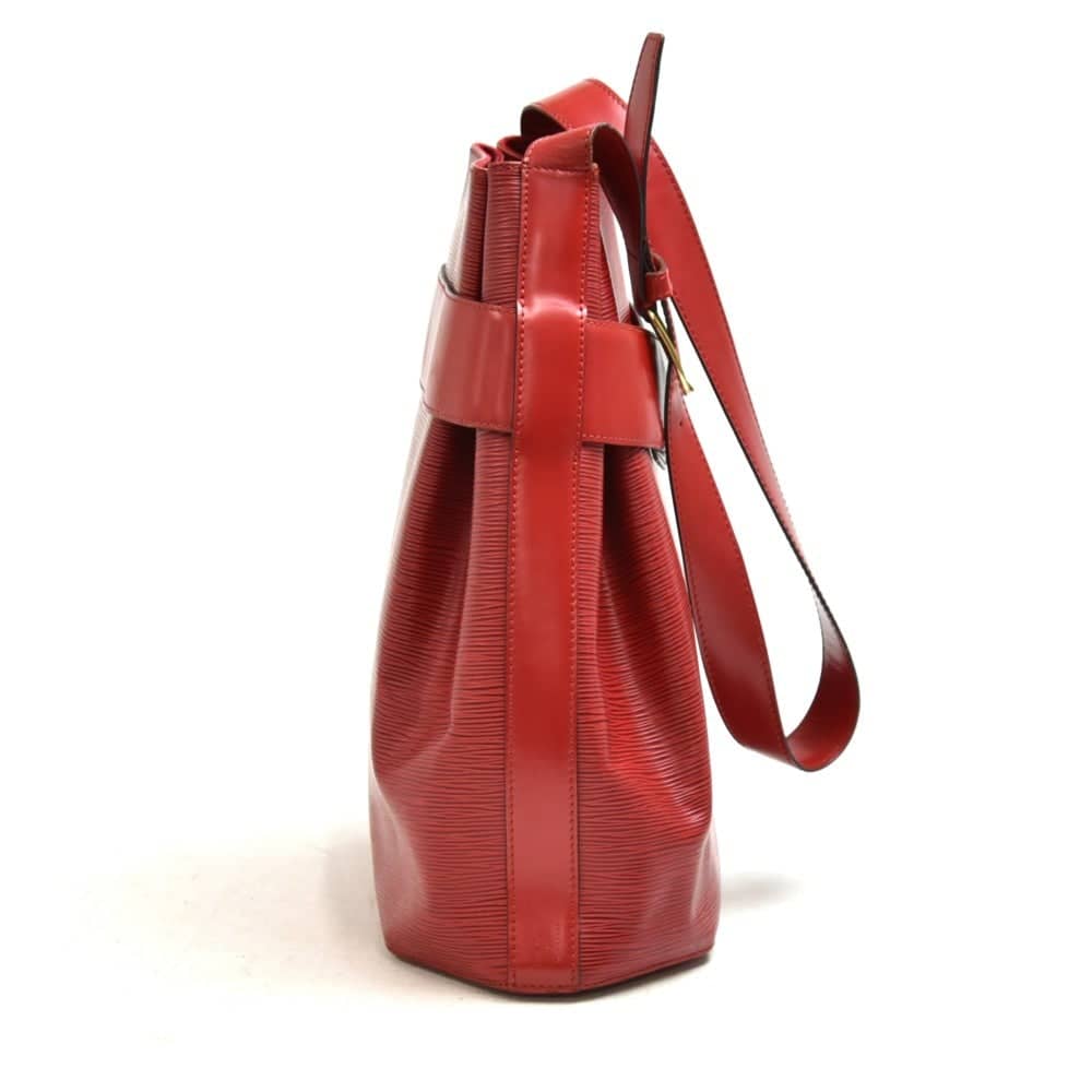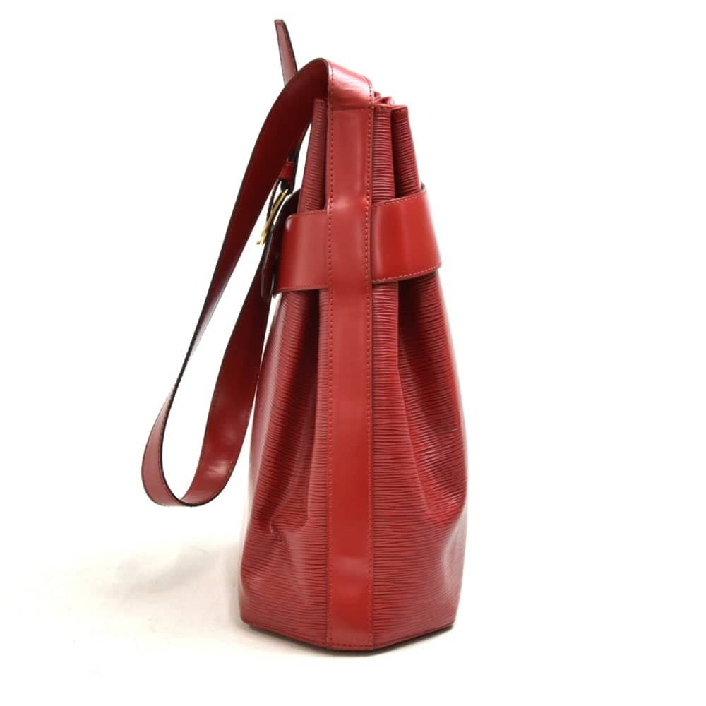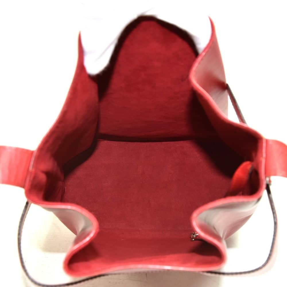The Louis Vuitton Sac d’Epaule GM was made of red EPI leather. It has an open access with a leather strap characterized with the LV logo, which around the top of the Bag is wrapped and secured with a push button with the wide adjustable shoulder strap can be worn over the shoulder. Inside it is lined with a beautiful alkantra leather. A great Bag For daily needs!