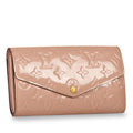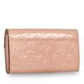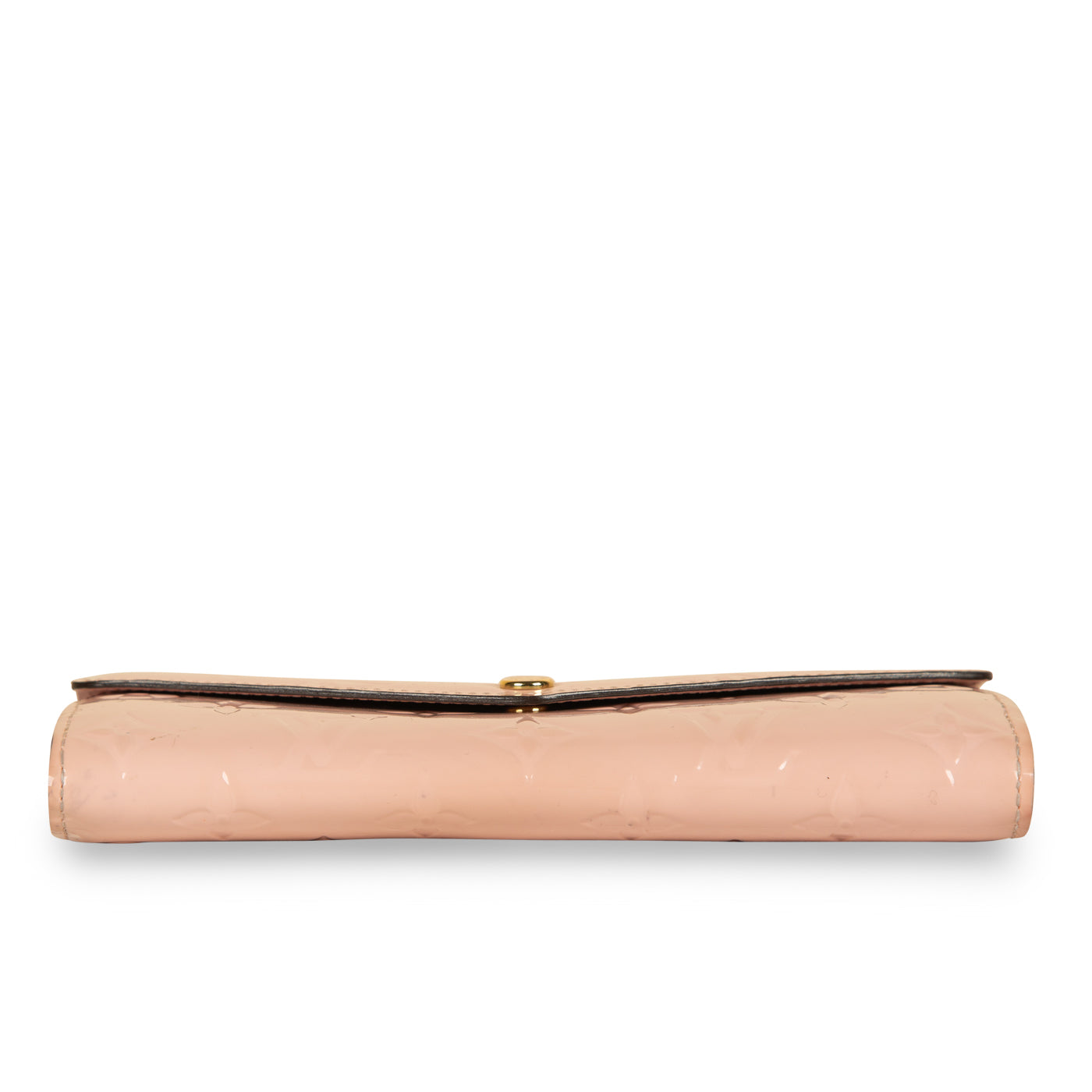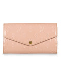 Carefully crafted from light pink monogram patent leather, the Sarah wallet from Louis Vuitton is the ideal accessory that balances luxury and practicality. With it's front envelope flap, spacious interior with enough room to carry all your cards, bills, change and receipts, the Sarah wallet is a glamorous accessory that you'll have forever. A must-have for any lover of LV, this timeless piece is a necessary addition to any accessory collection.