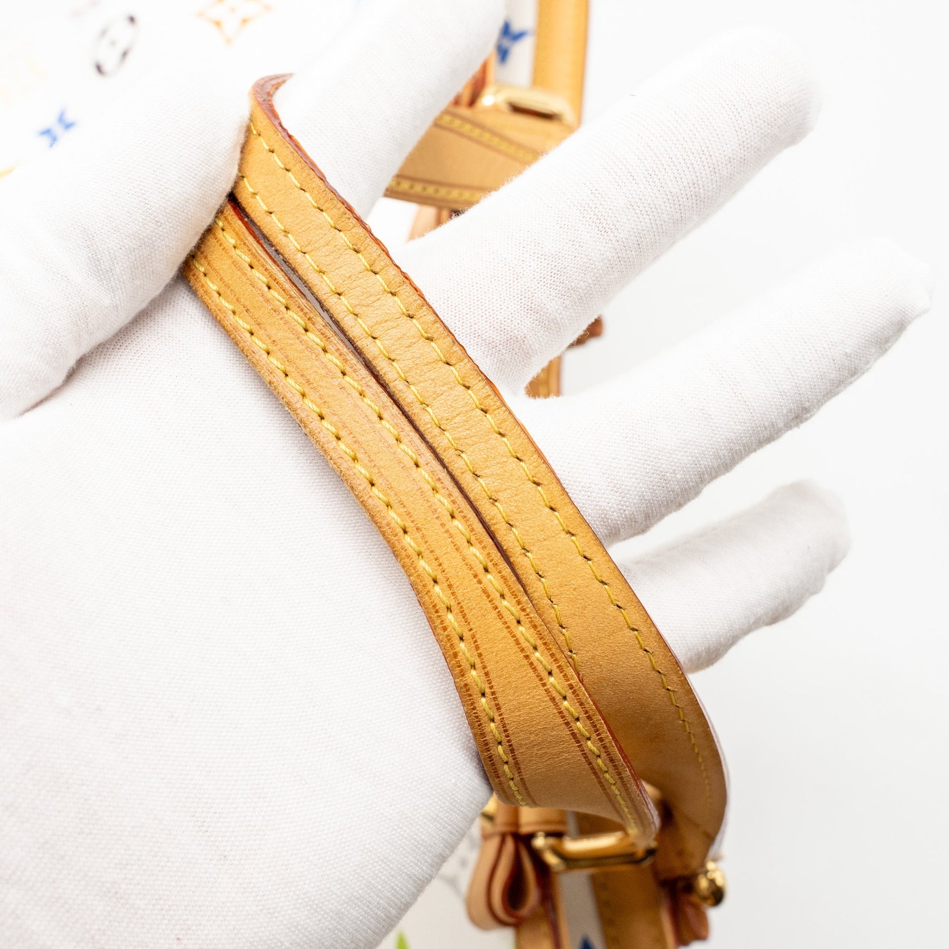Well Used (This item is in very good condition with slight color transfer on beige leather, slight scratches and dents on leather, minor rubbing on corners and edge, slight scratches on hardware, minor sign of use inside. )
