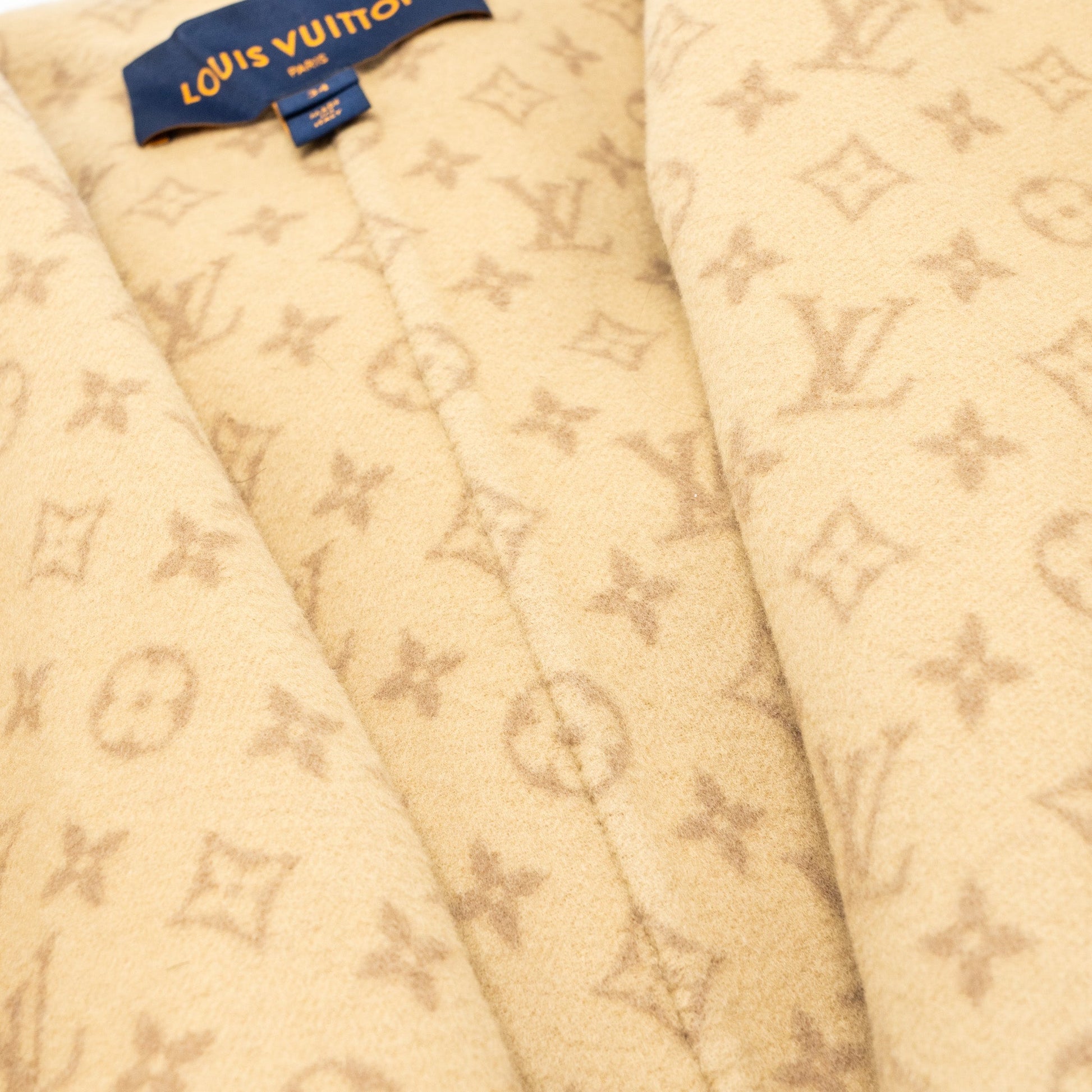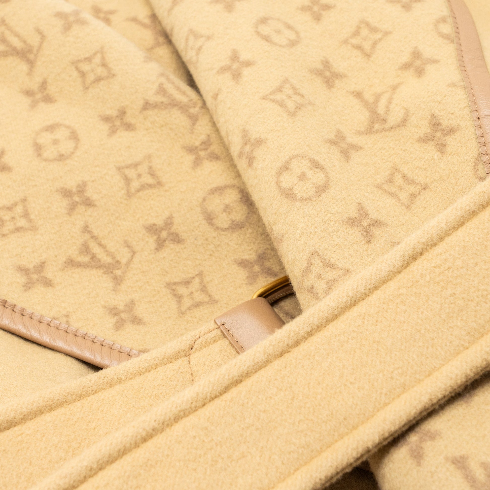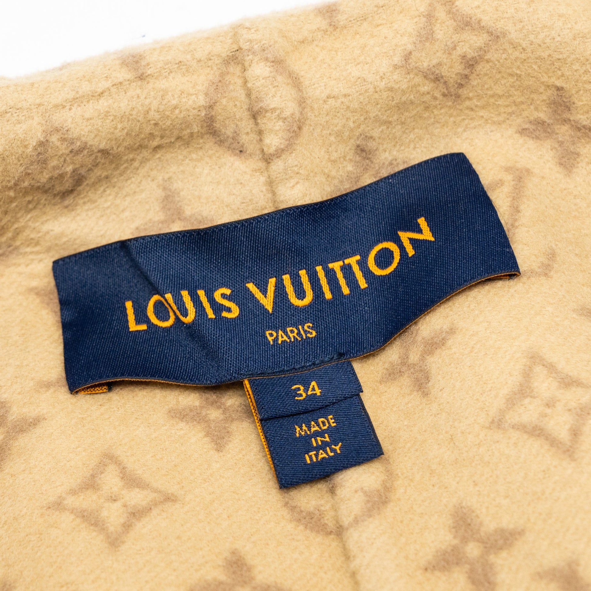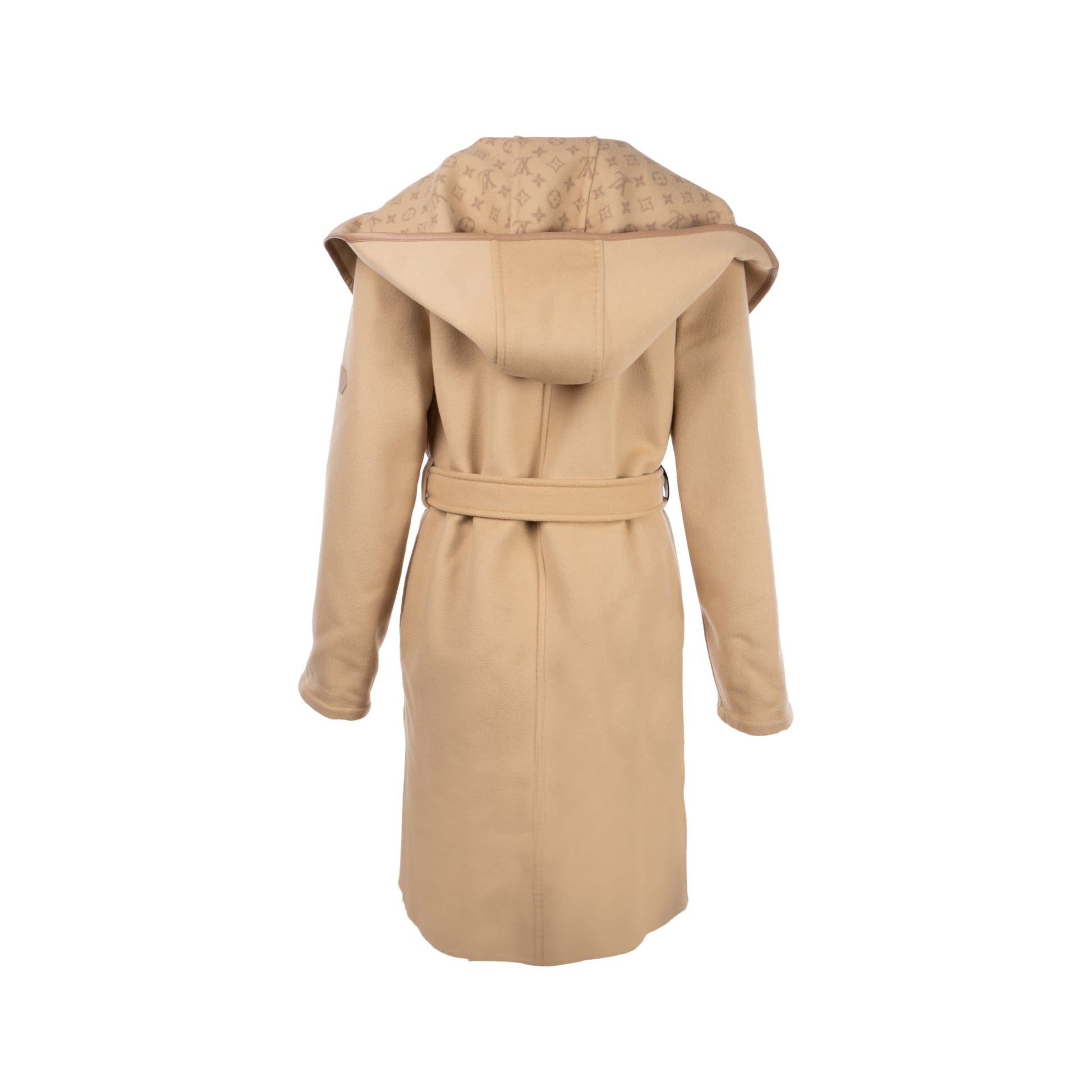 Louis Vuitton size 34 signature double face hooded wrap coat wool beige