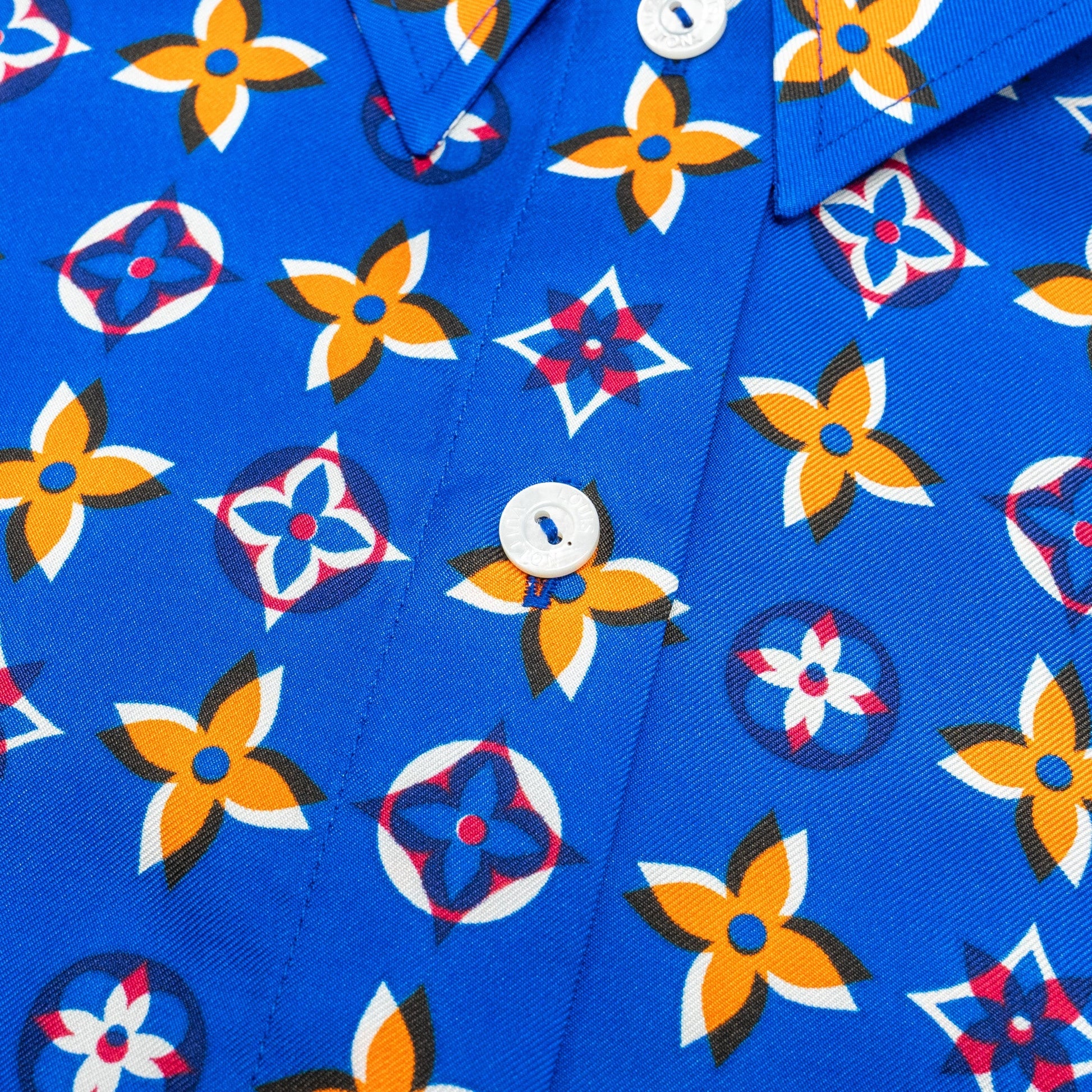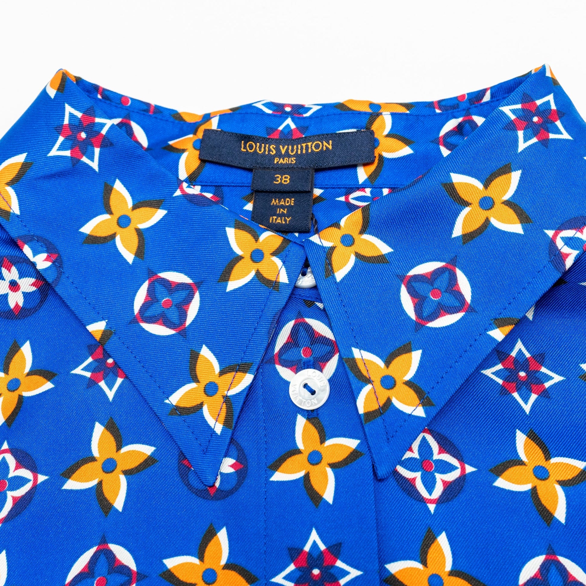 Louis Vuitton Size 38 Monogram Button Down Blouse/Shirt Silk Blue/Multicolour