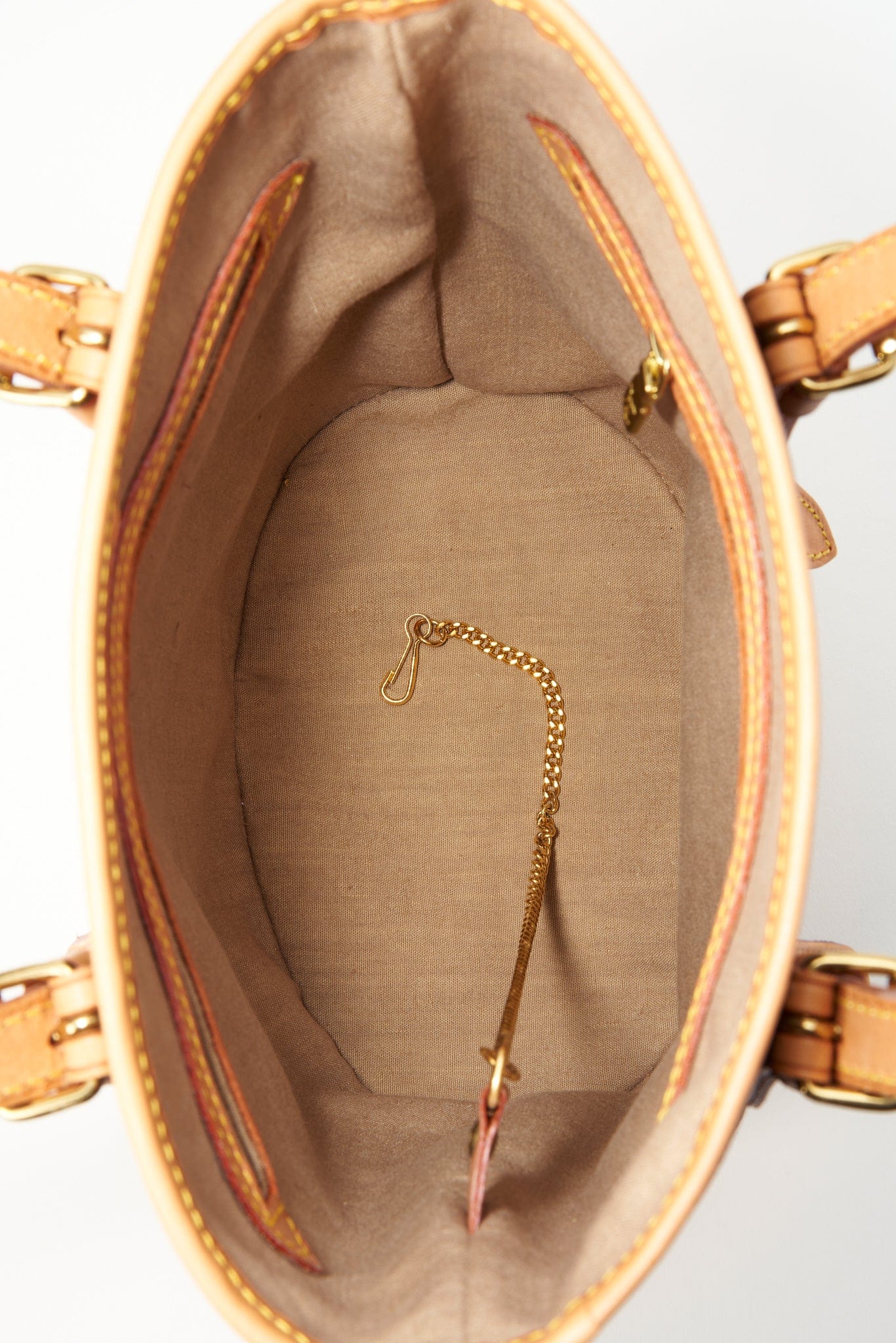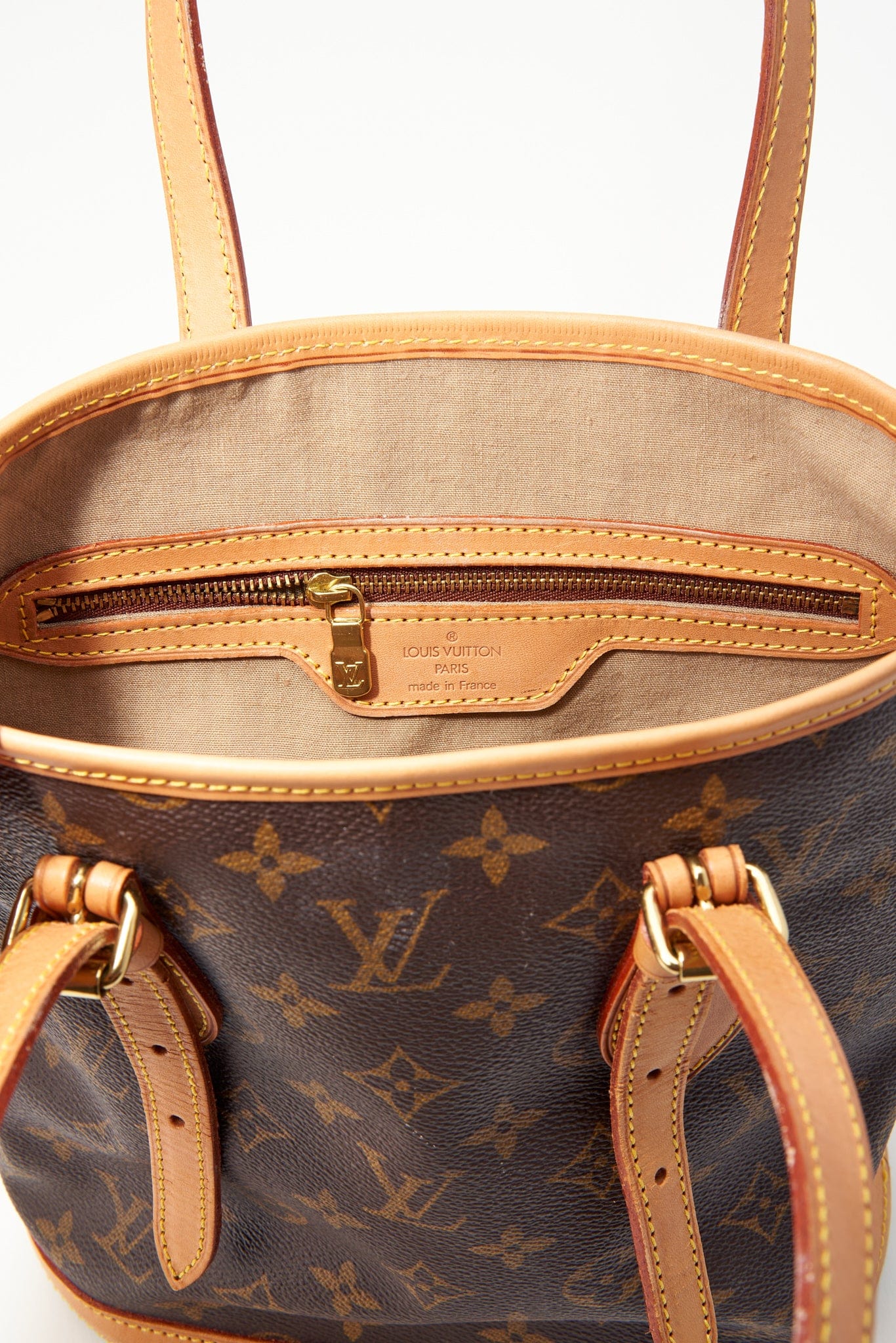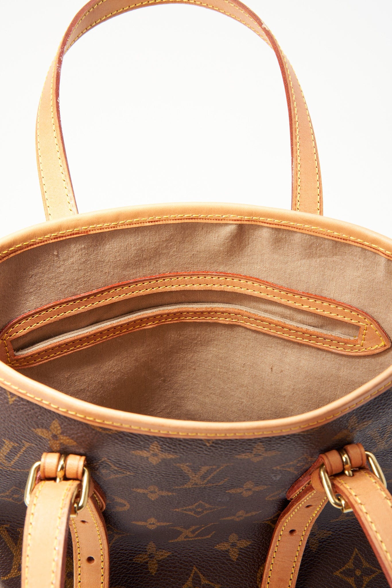 The Louis Vuitton Bucket tote bag is a fabulous portrait style tote with a round circular base. Made from the classic Louis Vuitton canvas.