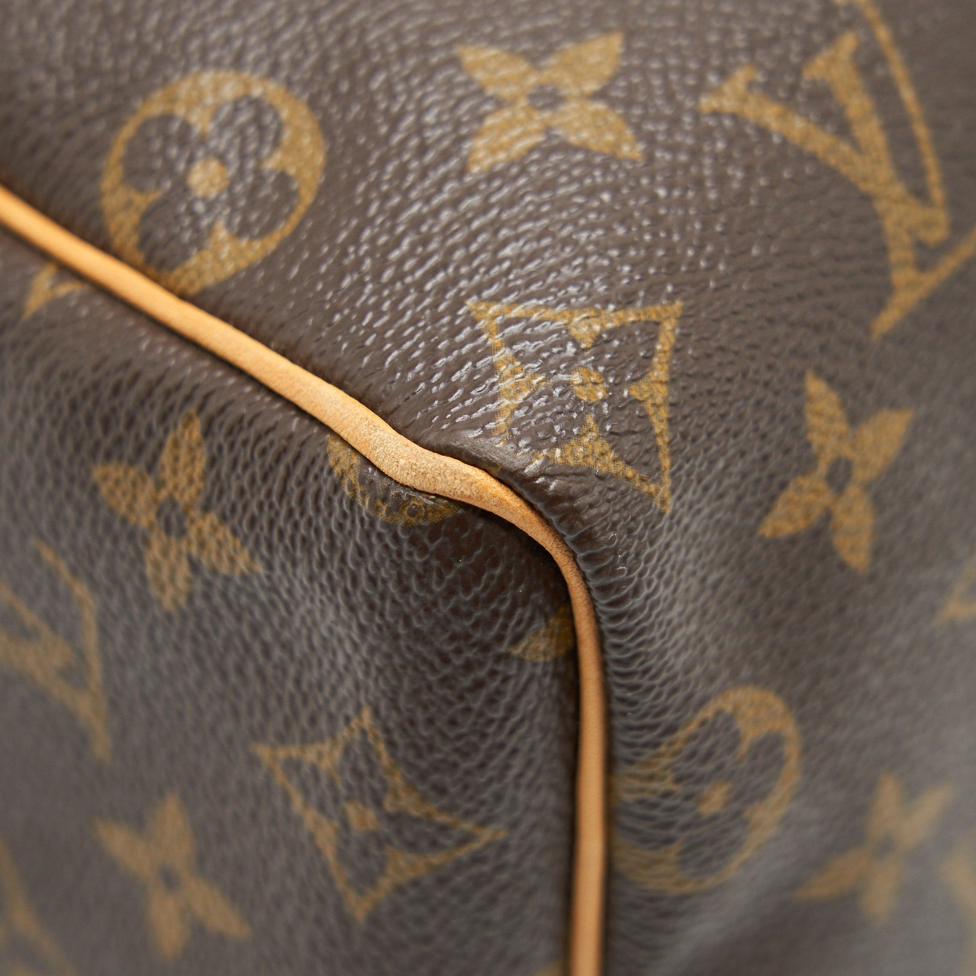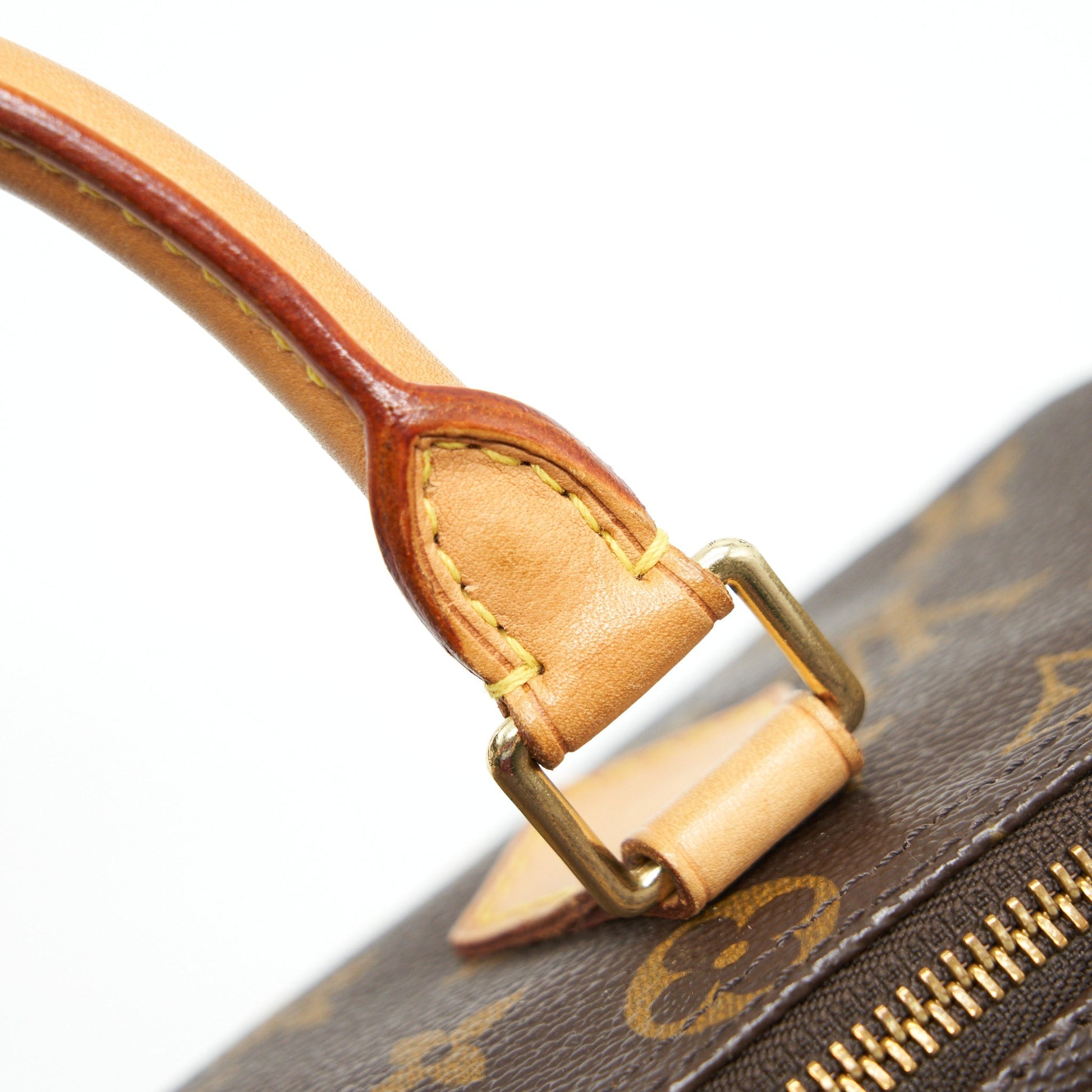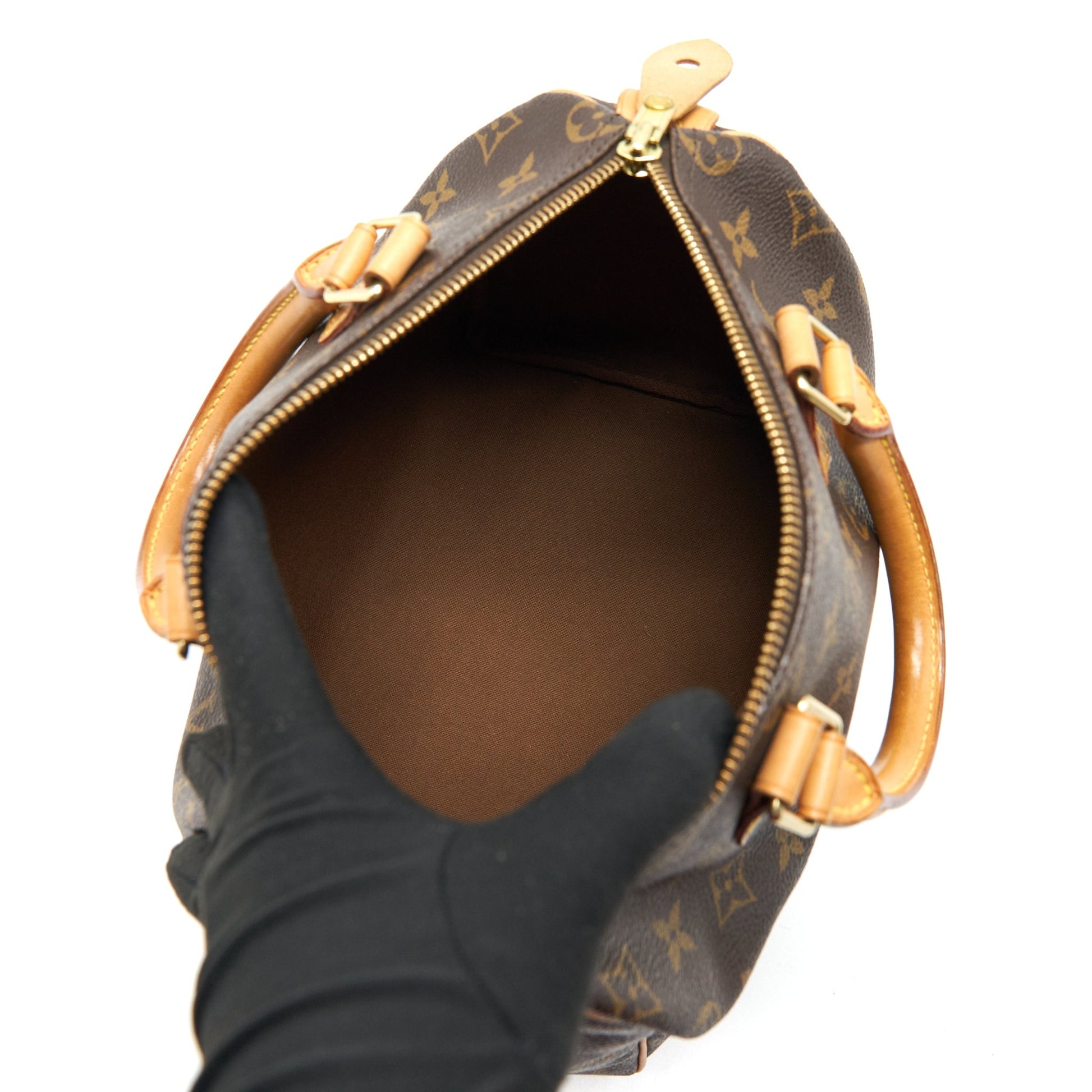 Gently Used (This item is in good condition with marks on beige leather, minor rubbing on corners. Slight sign of used and slight tarnished on hardware.)