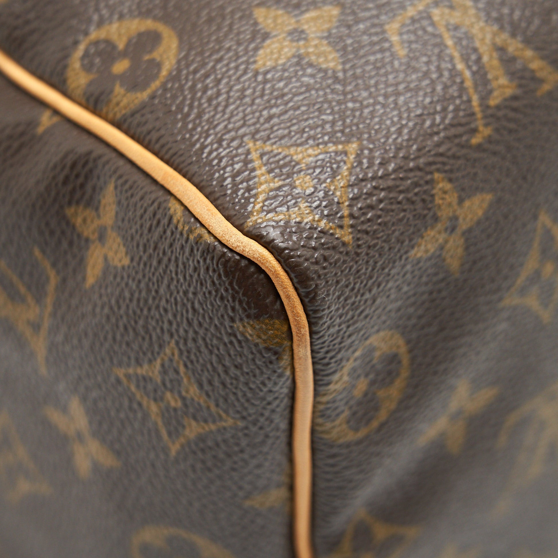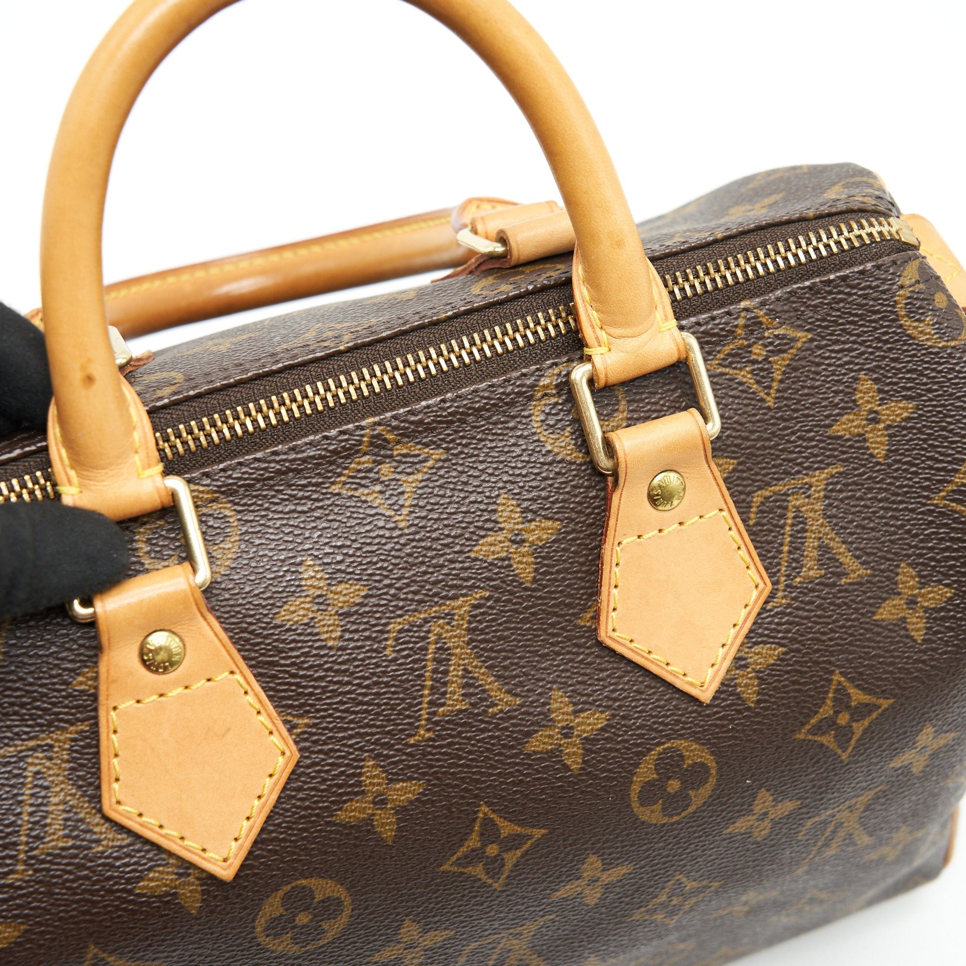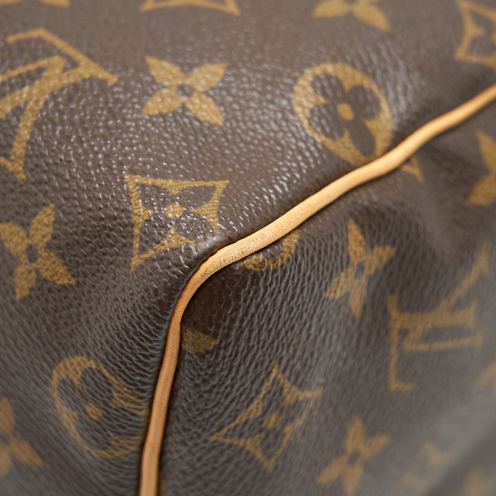 Gently Used (This item is in good condition with marks on beige leather, minor rubbing on corners. Slight sign of used and slight tarnished on hardware.)