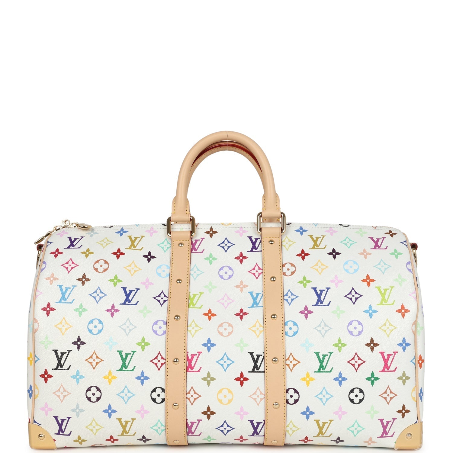 Louis Vuitton X Murakami Keepall Bandouliere 45 White Monogram Multicolored Gold Hardware