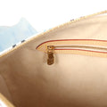 The interior is lined in beige microfiber lining and has one zip pocket on the rear wall.