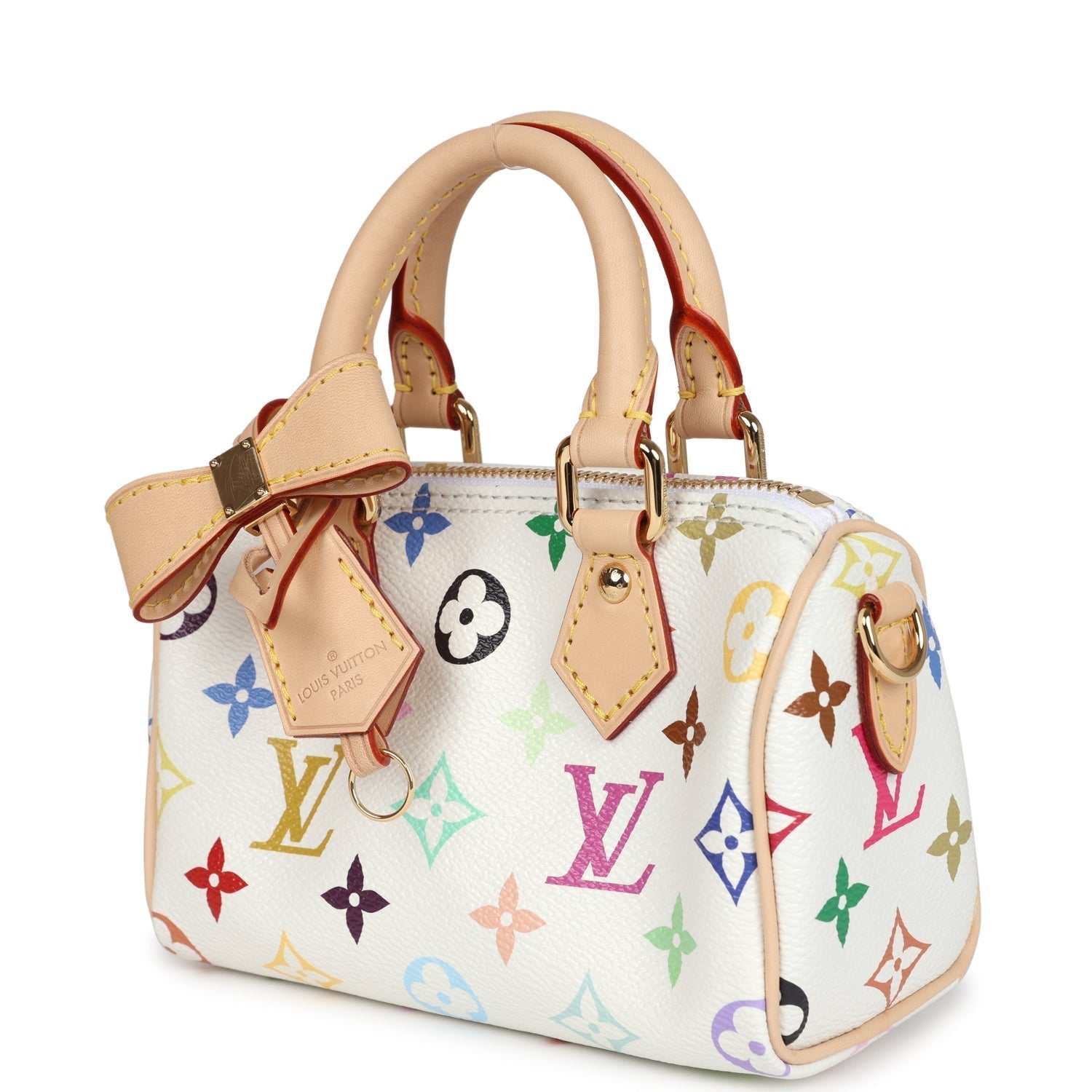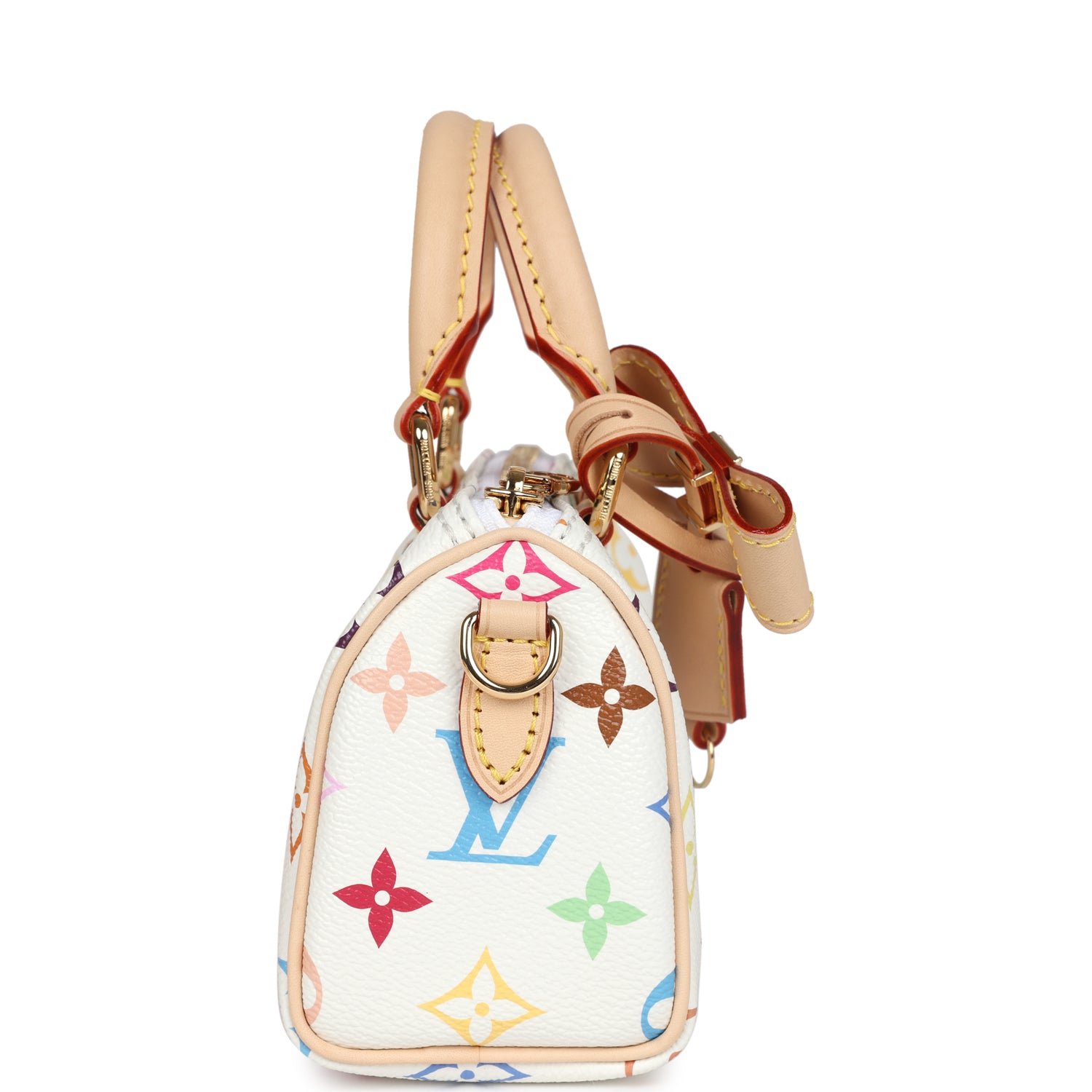 Louis Vuitton X Murakami Nano Speedy Bag White Multicolor Monogram Gold Hardware