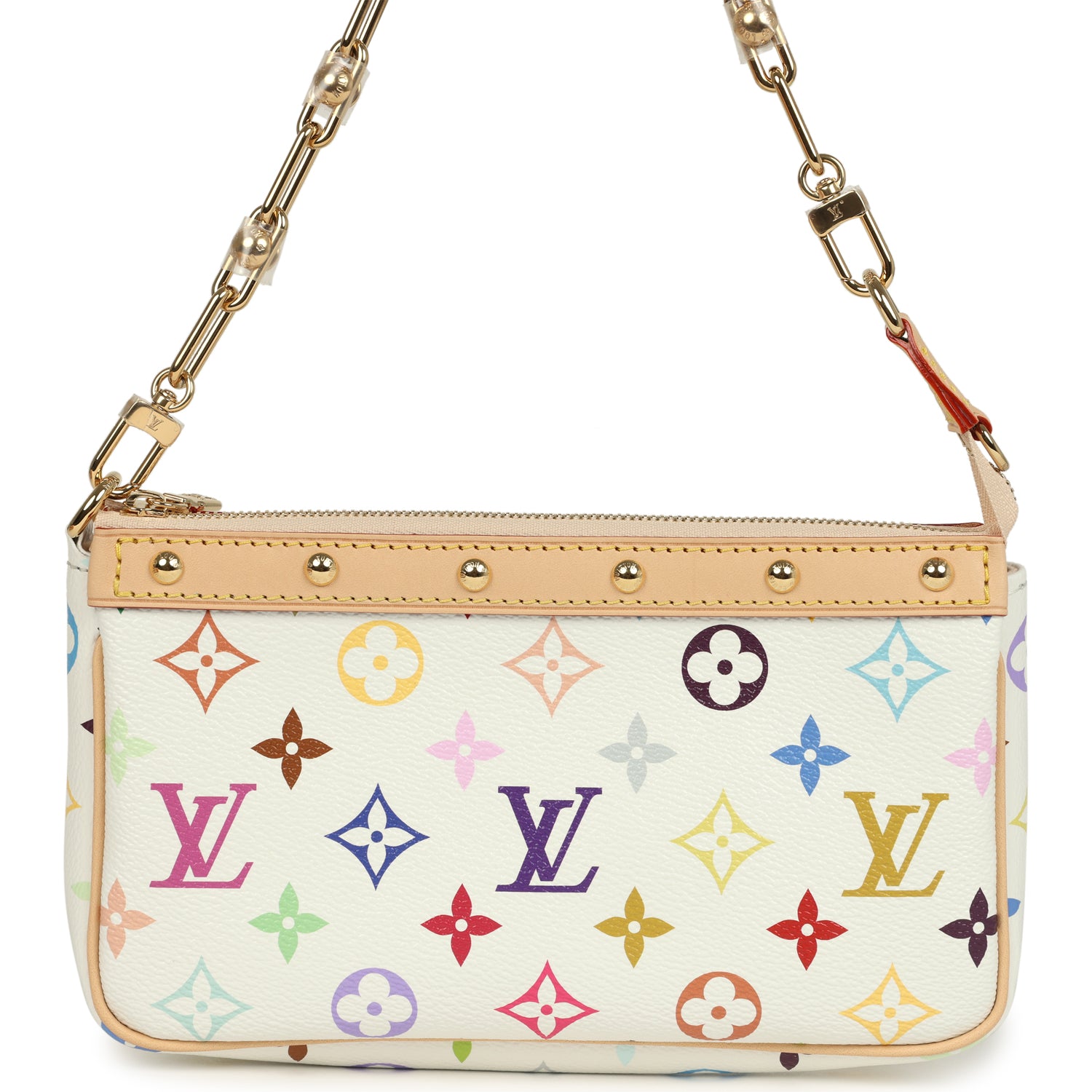 Louis Vuitton X Takashi Murakami Pochette Accessories White Multicolored Monogram Gold Hardware