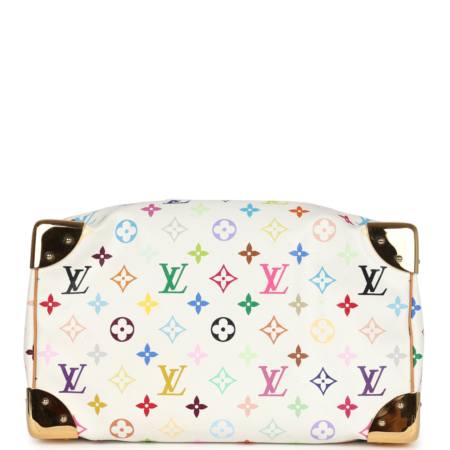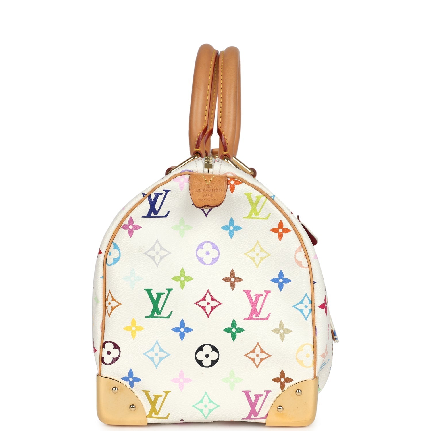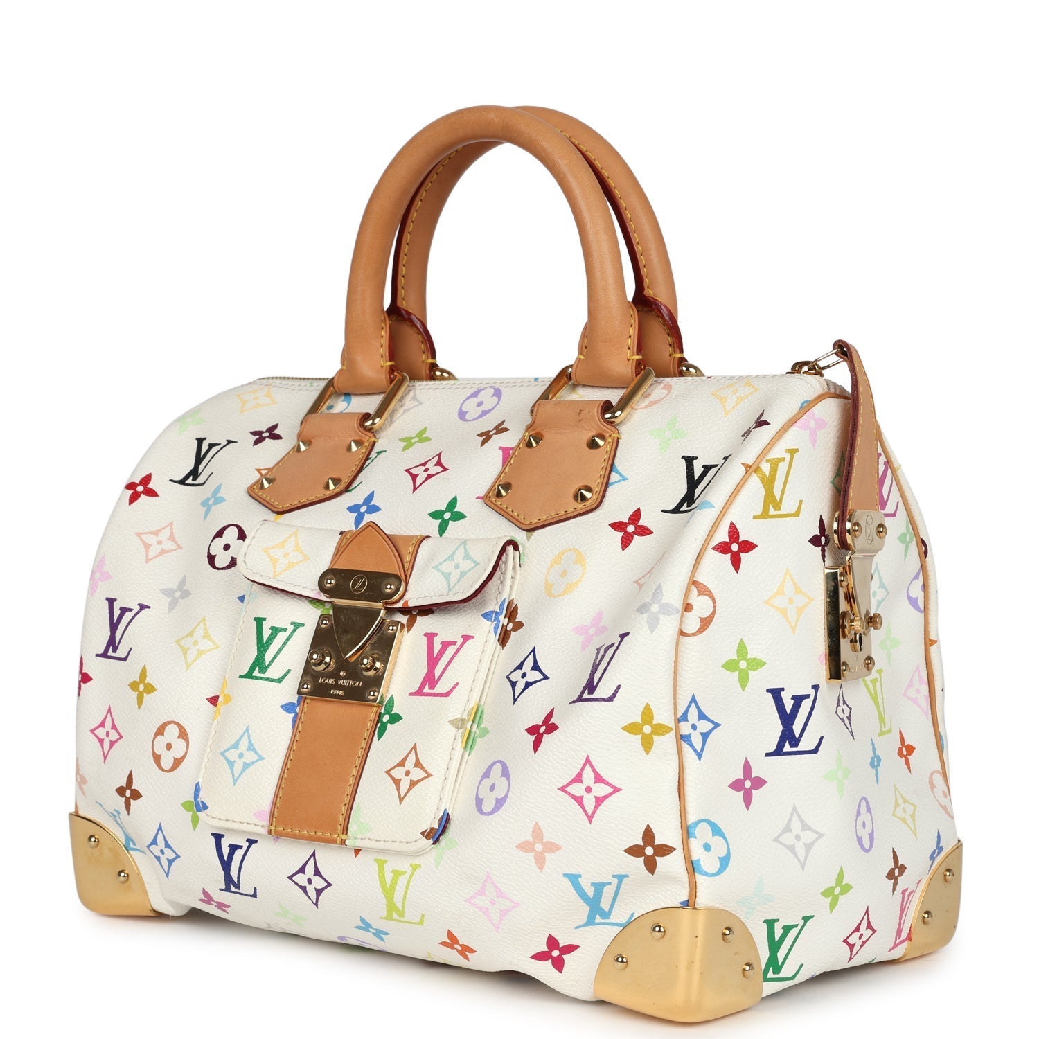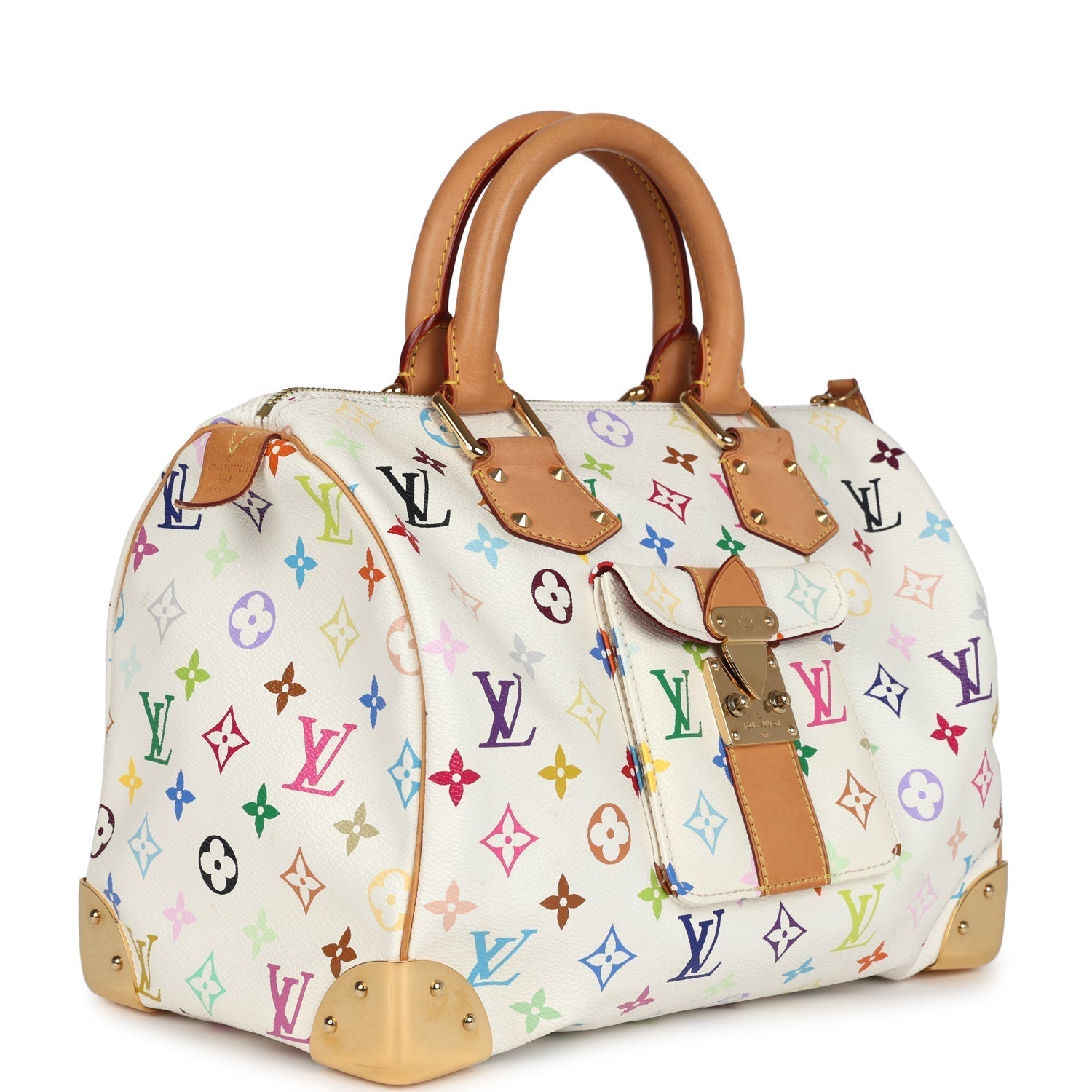 Louis Vuitton x Takashi Murakami Speedy 30 White Multicolor Monogram Gold Hardware