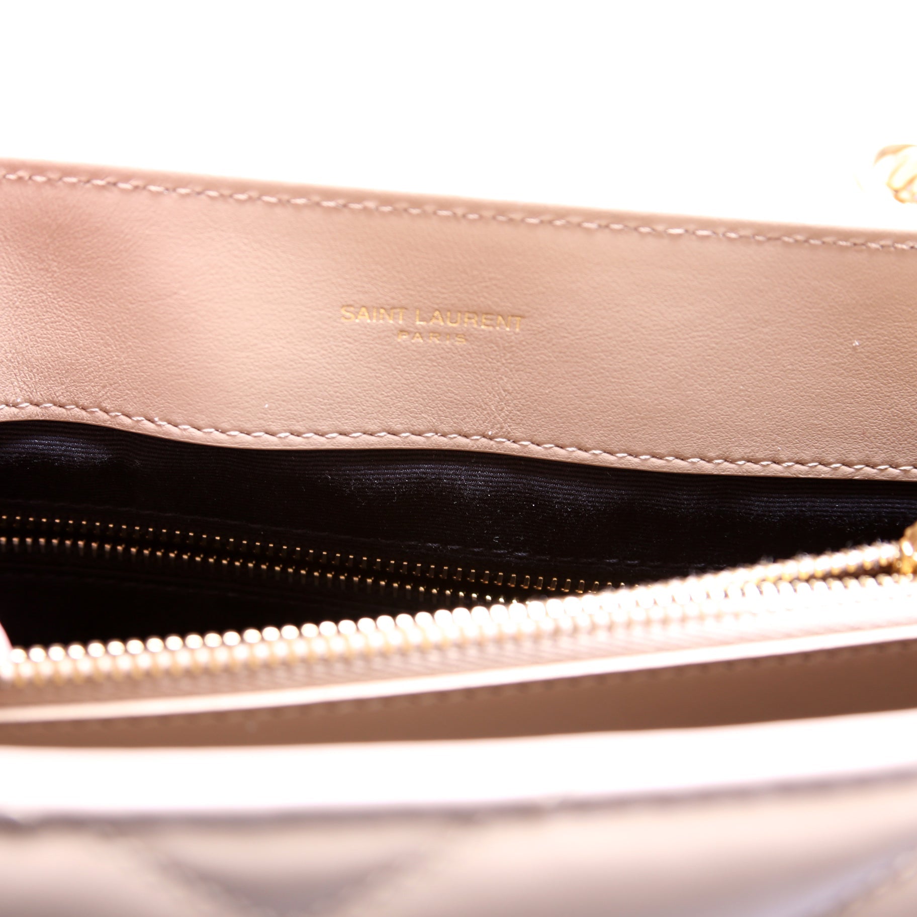 Interior: The interior is clean and free of rips or tears. The interior features two zipper pockets.