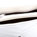 Interior: The interior is clean and free of rips or tears. The interior features two zip closure pockets and two open sections.
