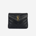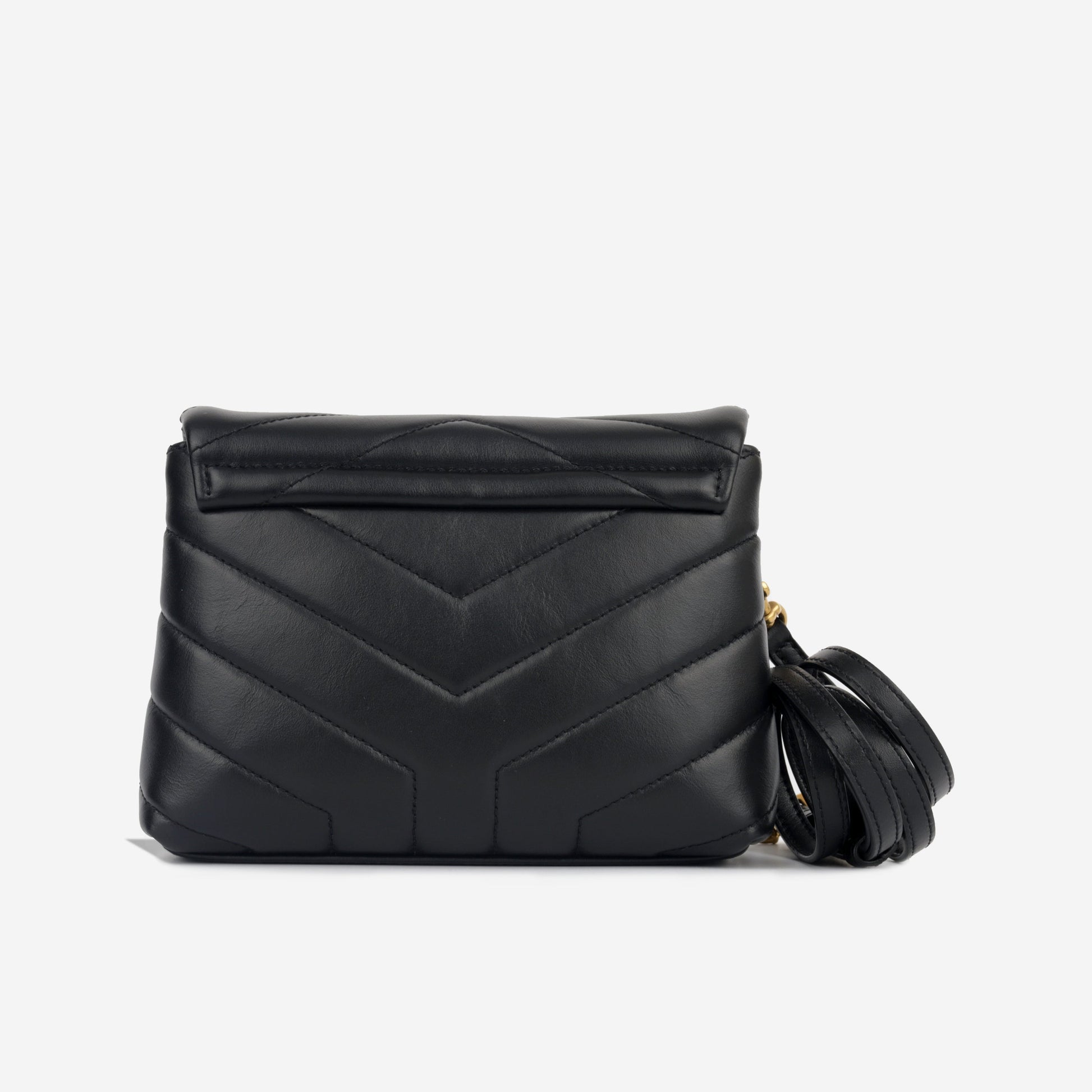 Introducing Saint Laurent's iconic Lou Toy bag – the ideal accessory for the modern, on-the-go woman with a penchant for luxury. Meticulously crafted in smooth black matelassé leather and paired with sleek gold hardware, the Lou perfectly encapsulates the brand's edgy-glam aesthetic. Beyond its stylish allure, this bag is designed to be both practical and chic, making it a must-have for those who appreciate the blend of sophistication and functionality.