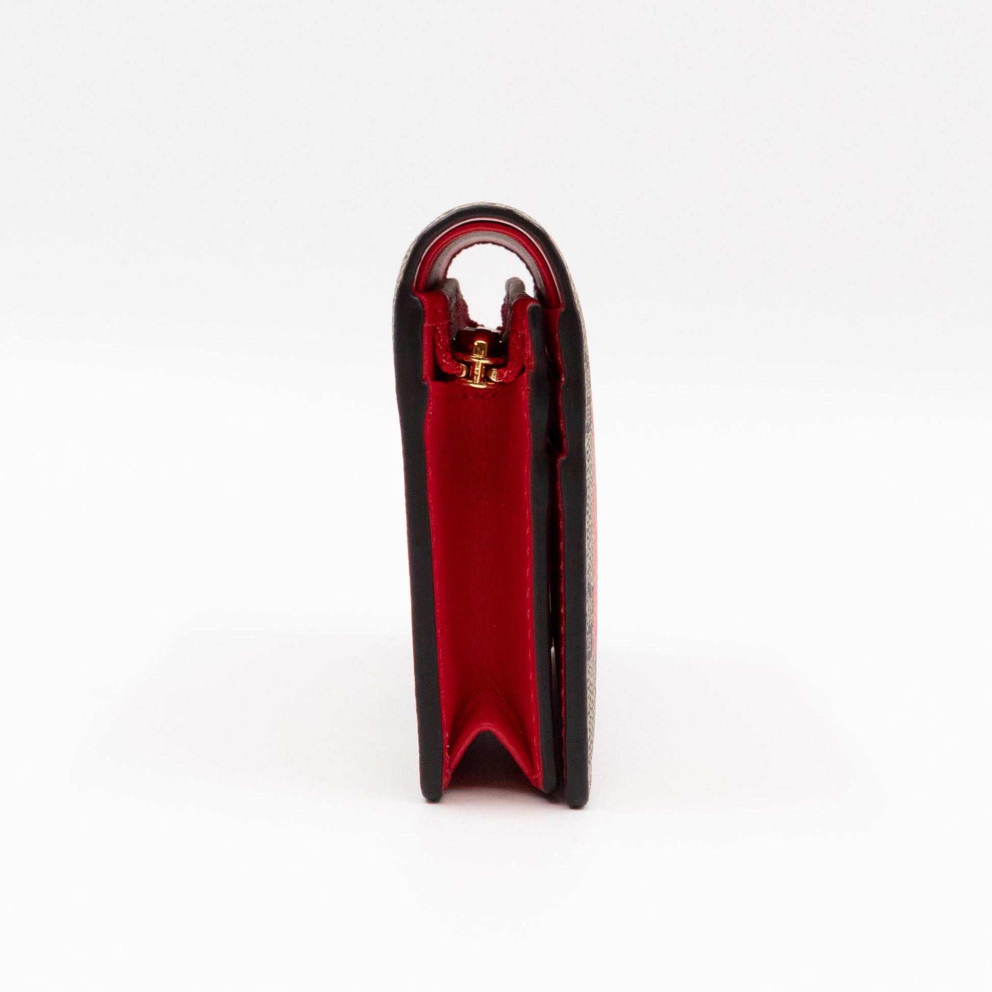 Gucci LOVE Card Case Flap Wallet GG Supreme Canvas Red