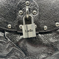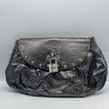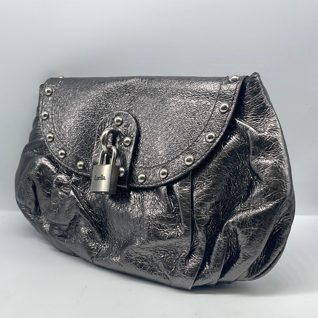 Luella Natural Leather Ladies Clutch Bag in Gunmetal with Decorative Padlock