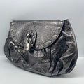 This elegant clutch bag from Luella is crafted from natural leather in a sophisticated gunmetal hue. The design features a distinctive decorative padlock, adding a touch of edgy charm to its sleek silhouette. The bag includes the original keys to the padlock and comes with a dust bag for proper storage. As a item, it has undergone quality checks and may show minor signs of wear, reflecting its unique character and history.