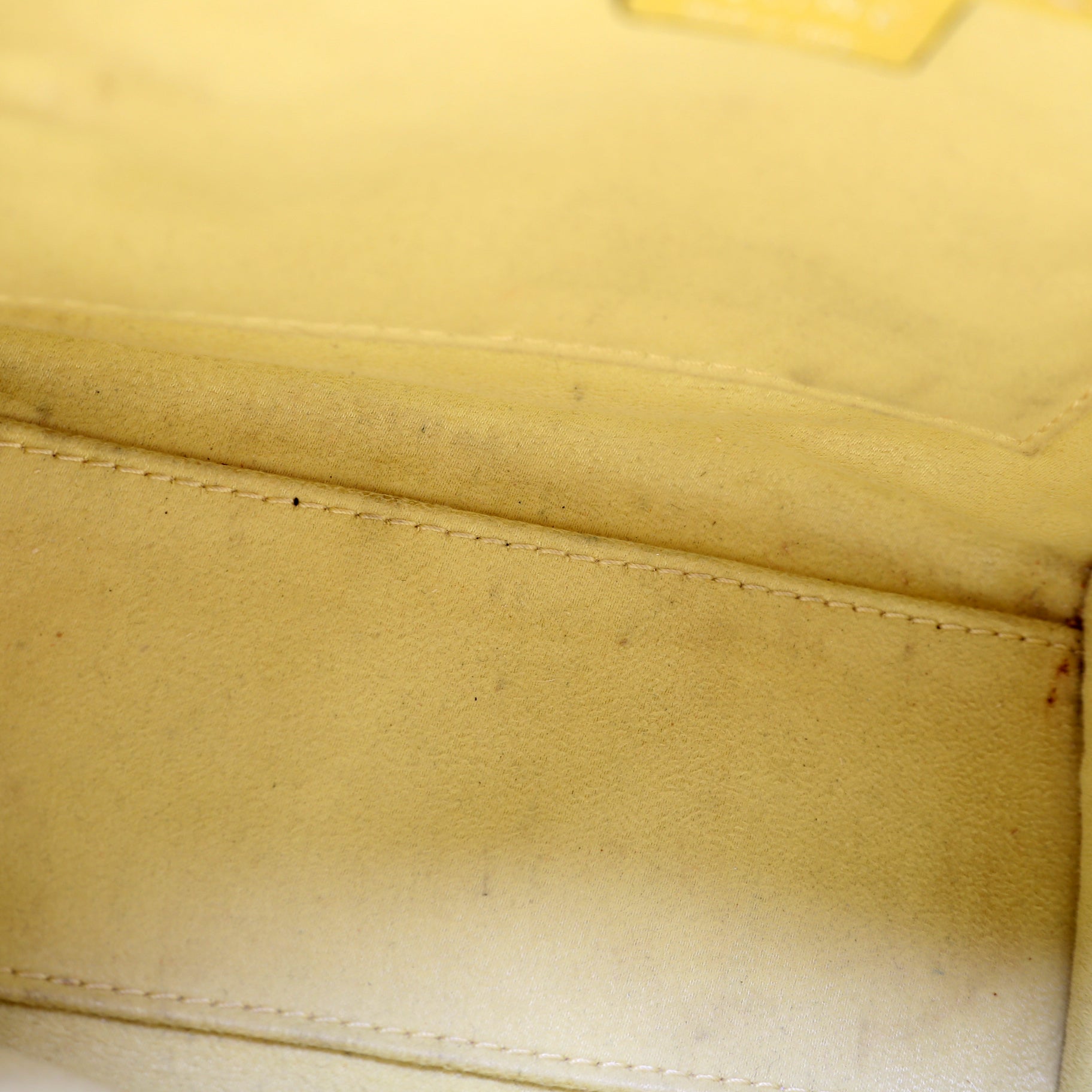 Interior: The interior is free of rips or tears. There is minor discoloration throughout. The interior features one open pocket.