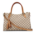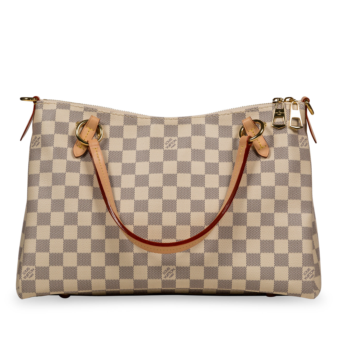 The bag you've been searching for, the bag you'll chuck your whole world into, the ultimate go-to you'll use every day for the rest of your life - the Louis Vuitton ymington is that bag. A classic piece from the brand, the Lymington Tote is crafted in Damier Azur canvas and features beige leather top handles.The perfect size that isn't too overpowering but manages to hold absolutely everything you may need throughout your day, this gem of a bag is a true must-have for anyone with a love for luxury and a busy schedule. Your laptop, binders, books, your Pret takeaway, diapers for your baby, your actual baby - ok not actually, but you get the idea. The Lymington does it all, all while remaining chic, stylish and elegant. It's a bag you'll have forever and one you'll never want to part with. Not to mention that given it's classic white and grey checks, this bag will remain timeless and always fashionable. The perfect balance between fashion and function, the Lymington is a well-worthy addition to any luxury handbag collection.