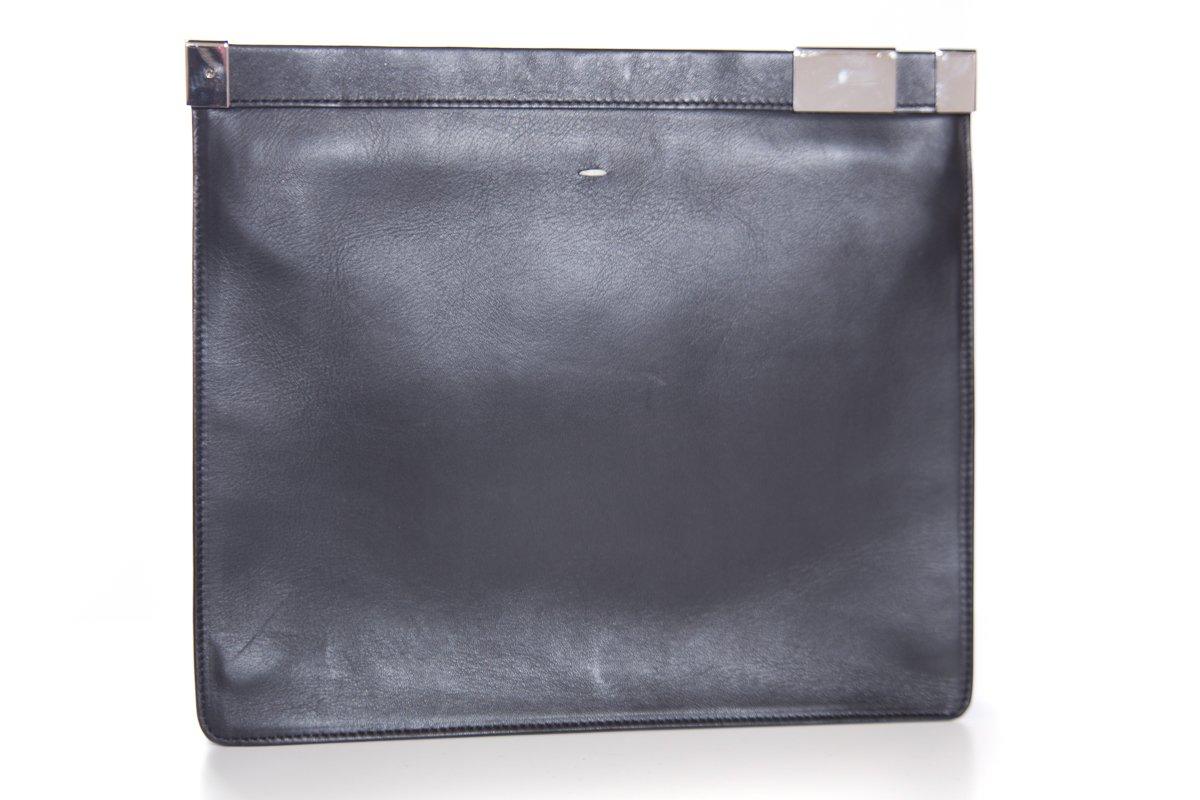 Maison Margiela black leather clutch with silver-tone hardware, leather lining and single interior pocket with zip closure at the top. This item is in very good condition.