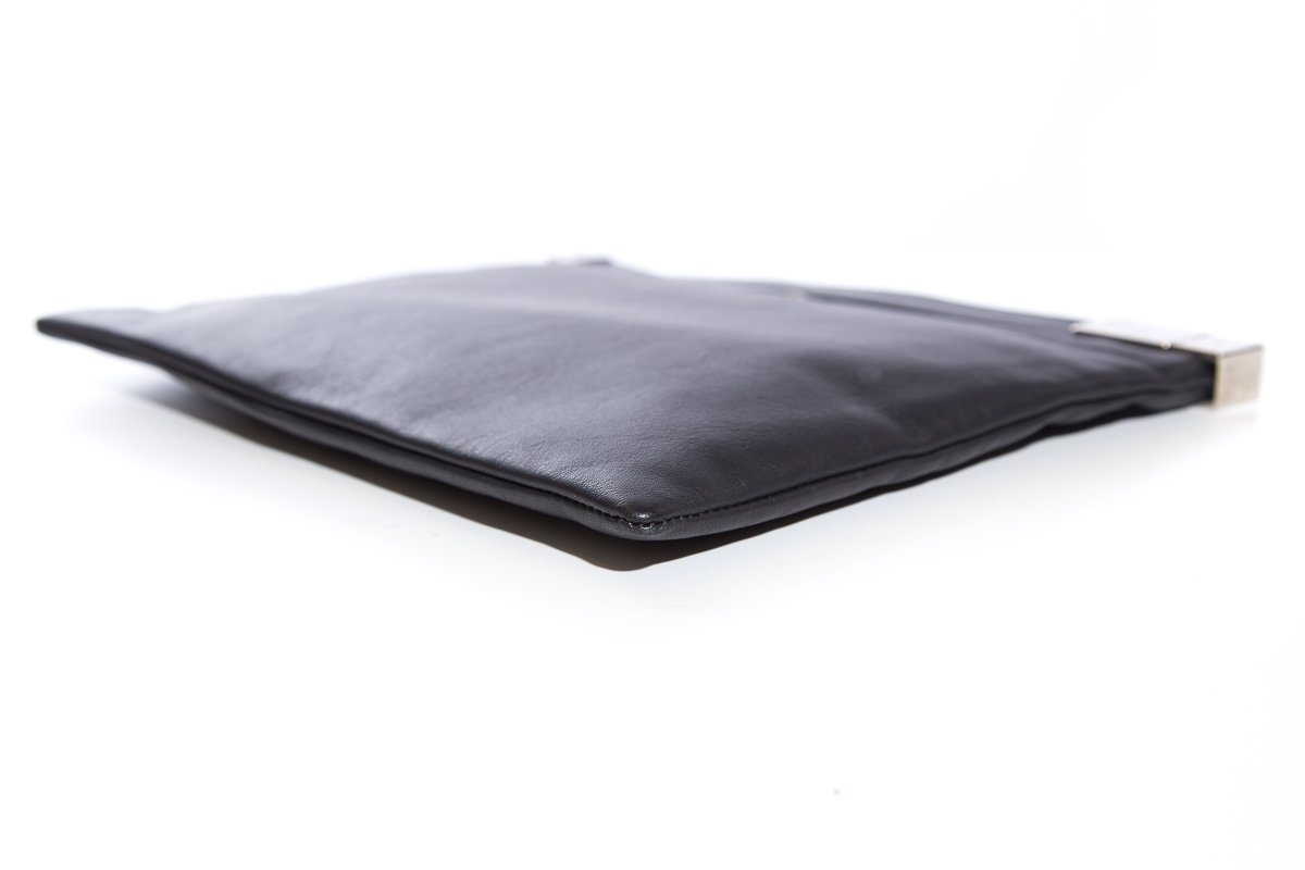 Masion Margiela ziplock cluth, genuine leather with fabric lining,zip closure top, and silver hardware. This item is in excellent condition.