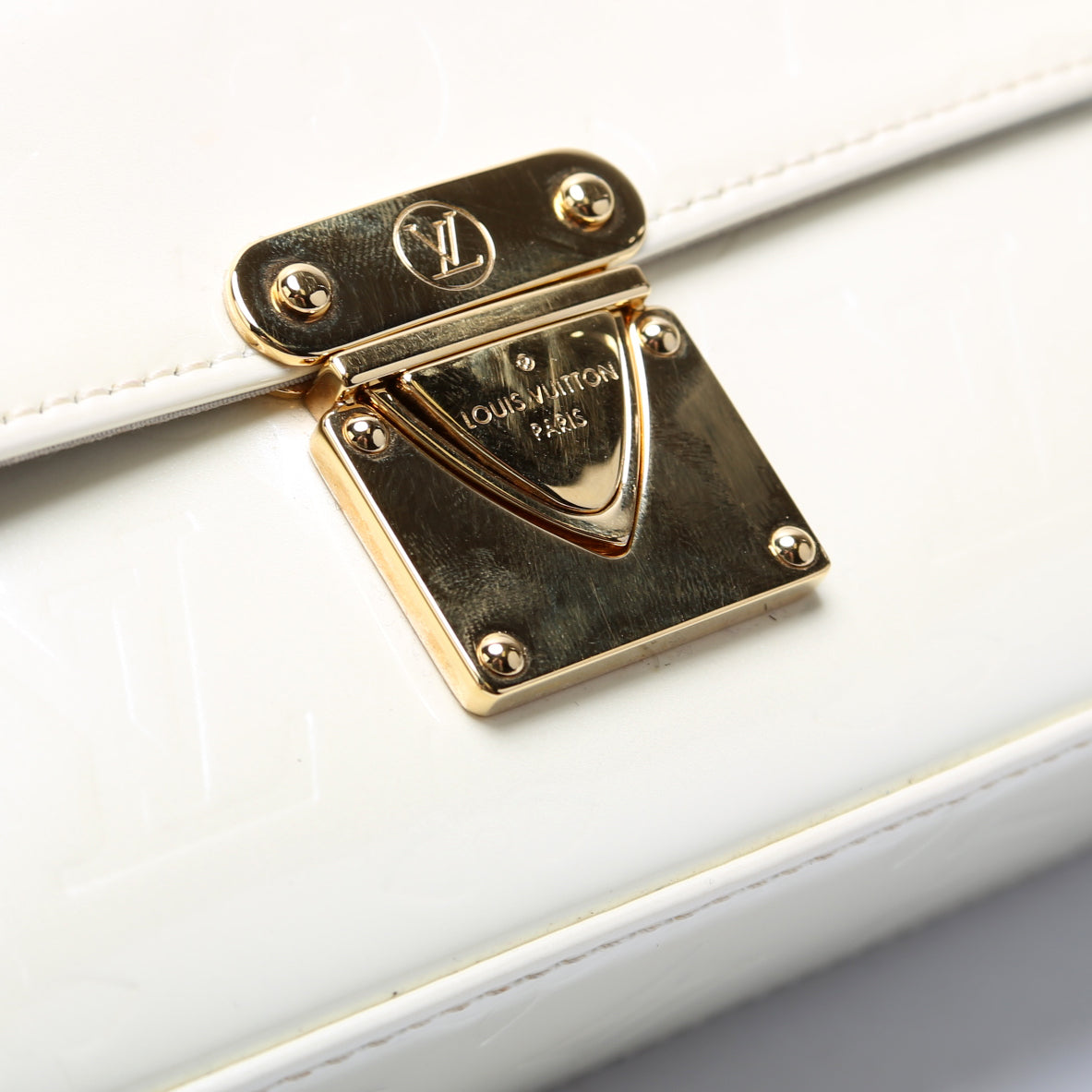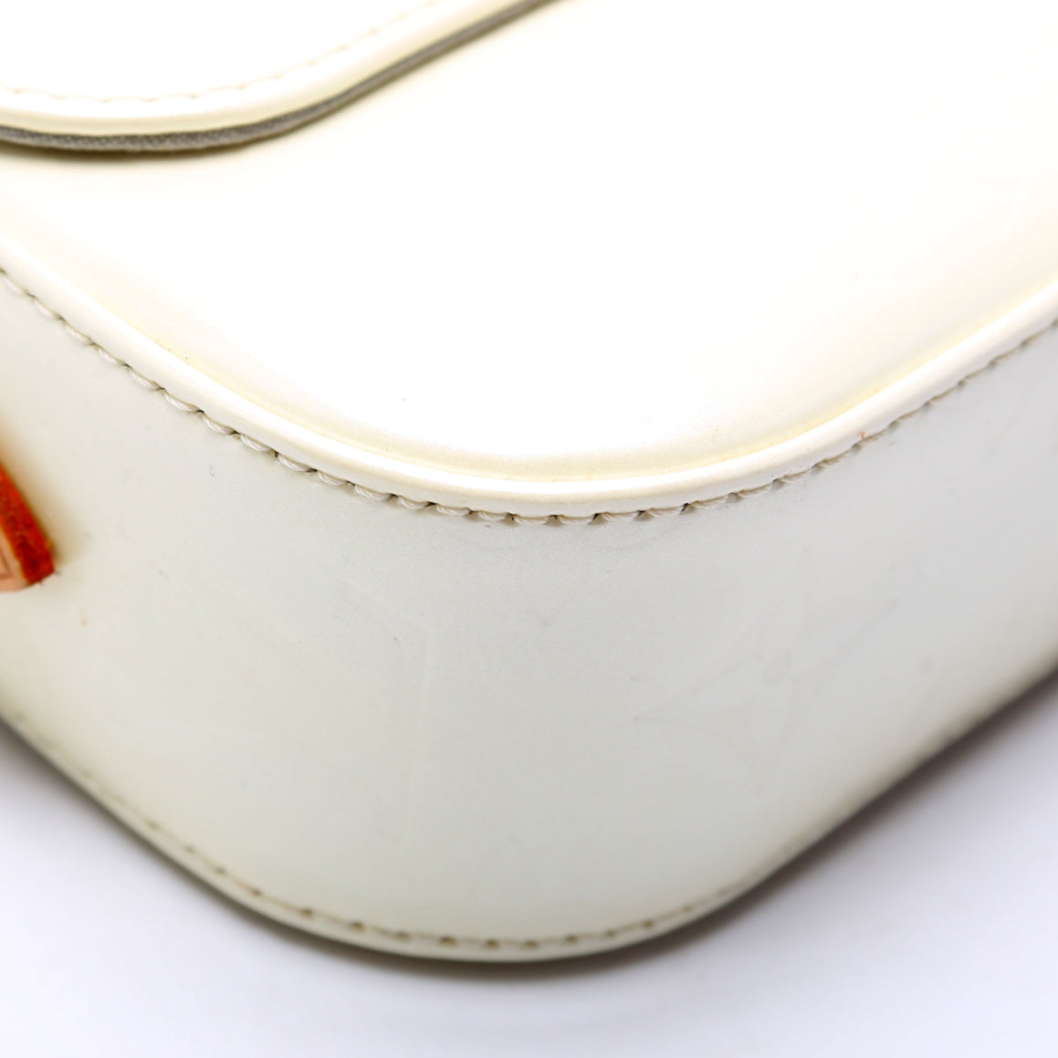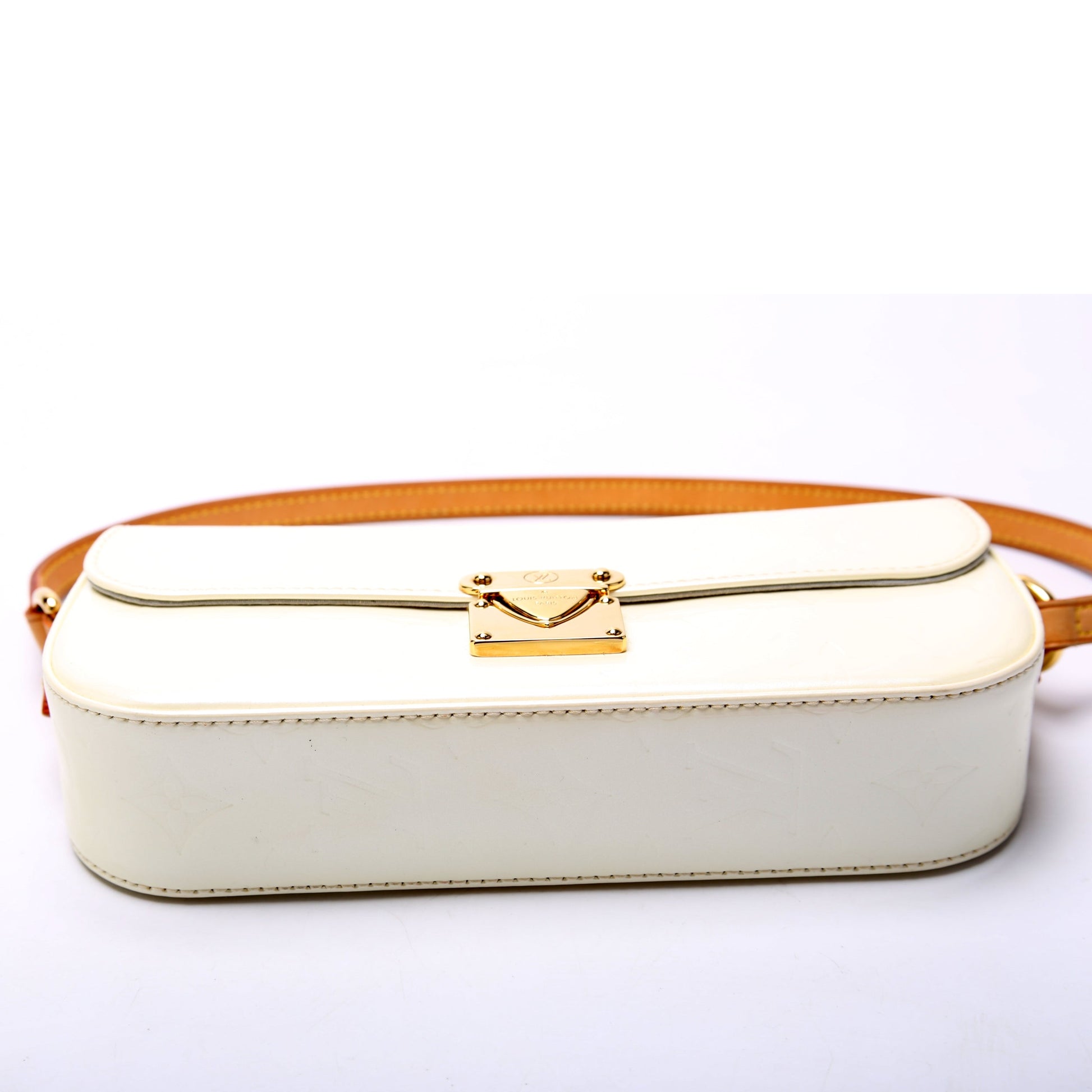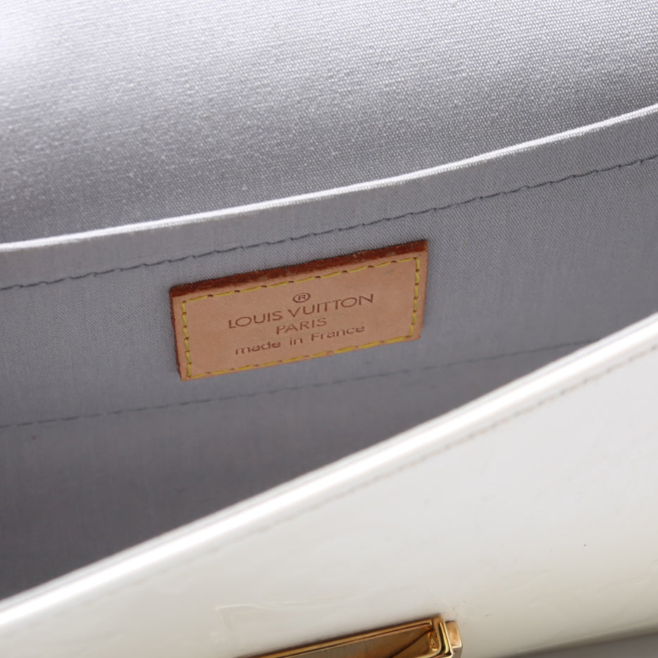 This Louis Vuitton Malibu Streetis eye catching bag. The exterior is in the Louis Vuitton Vernis patent leather.