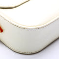 Exterior: The exterior leather shows minor discoloration to the back of the bag.