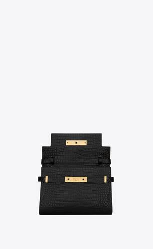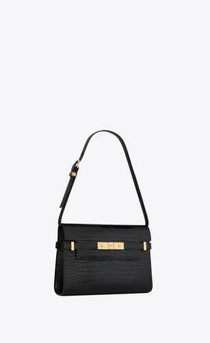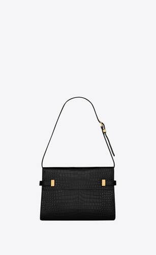 Manhattan Small Shoulder Bag In Shiny Crocodile Embossed Leather