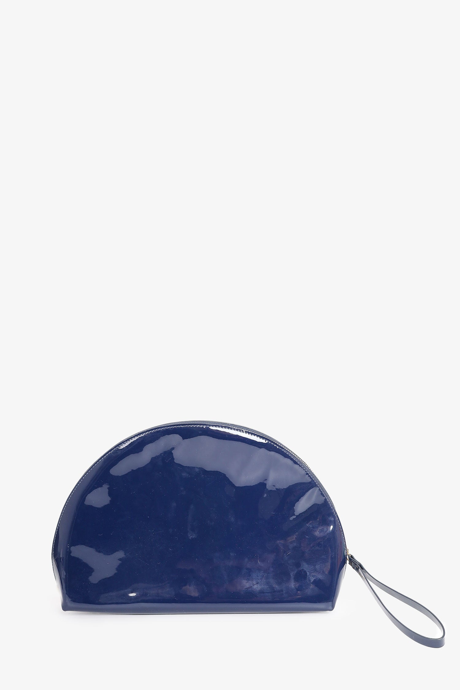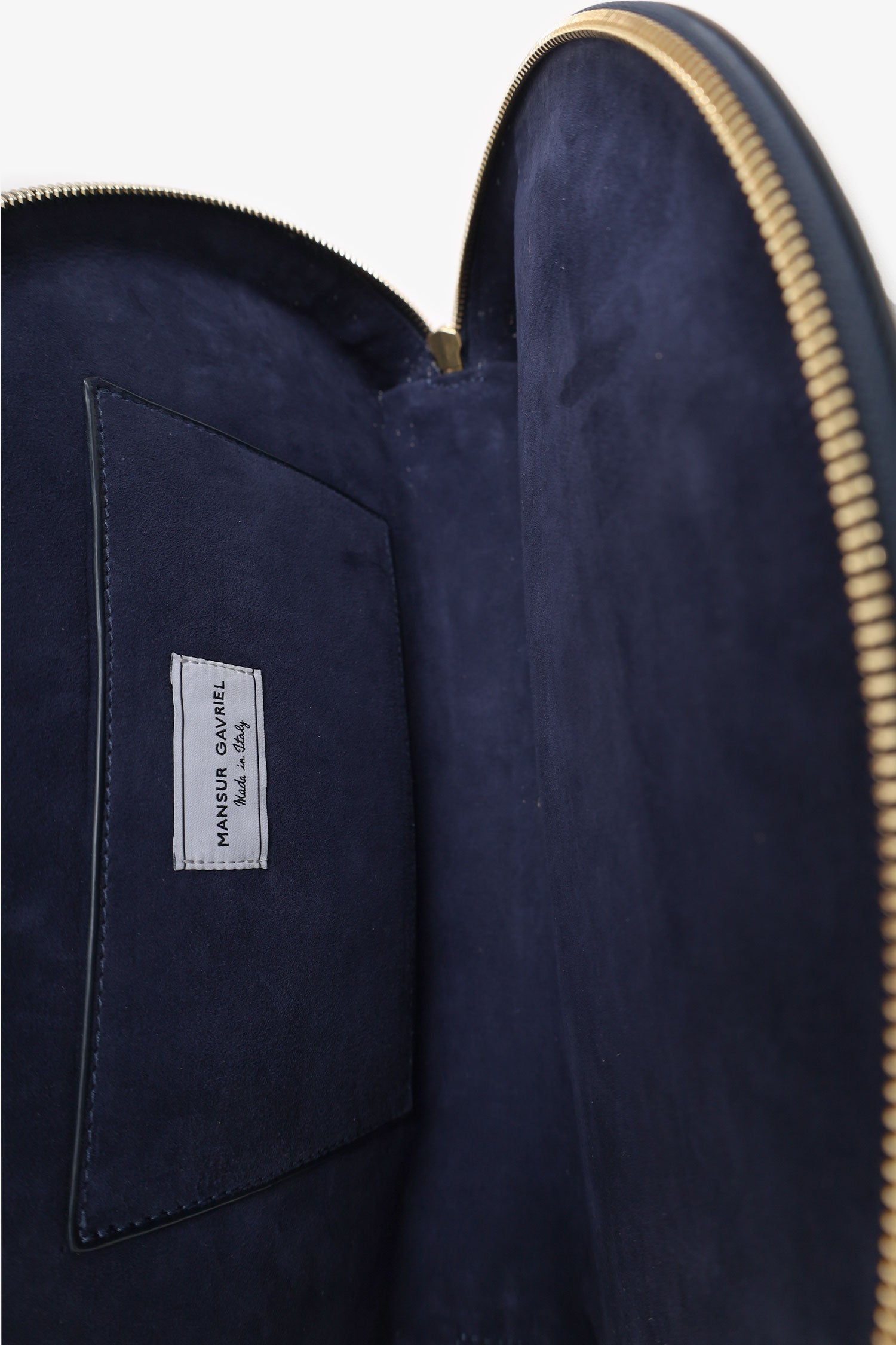 Mansur Gavriel Navy Patent Half Moon Clutch