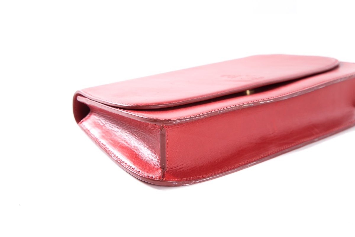 Mark Cross Red Leather Clutch with Shoulder Chain