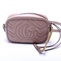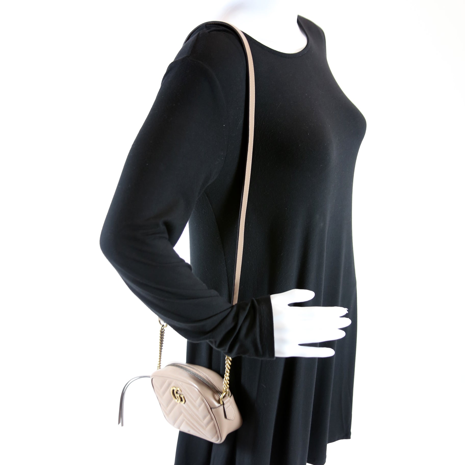This GG Marmont Mini Camera Bagis eye catching bag. The exterior is in the classic Gucci Marmont leather.