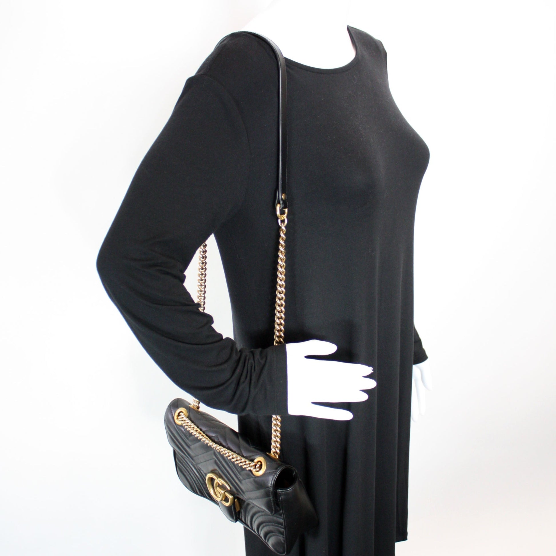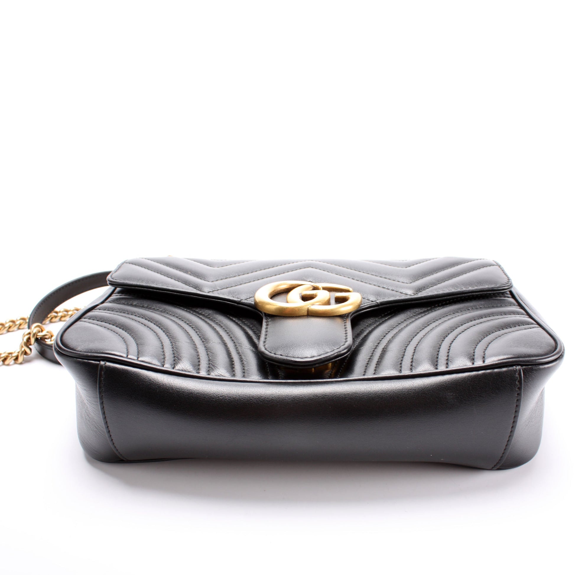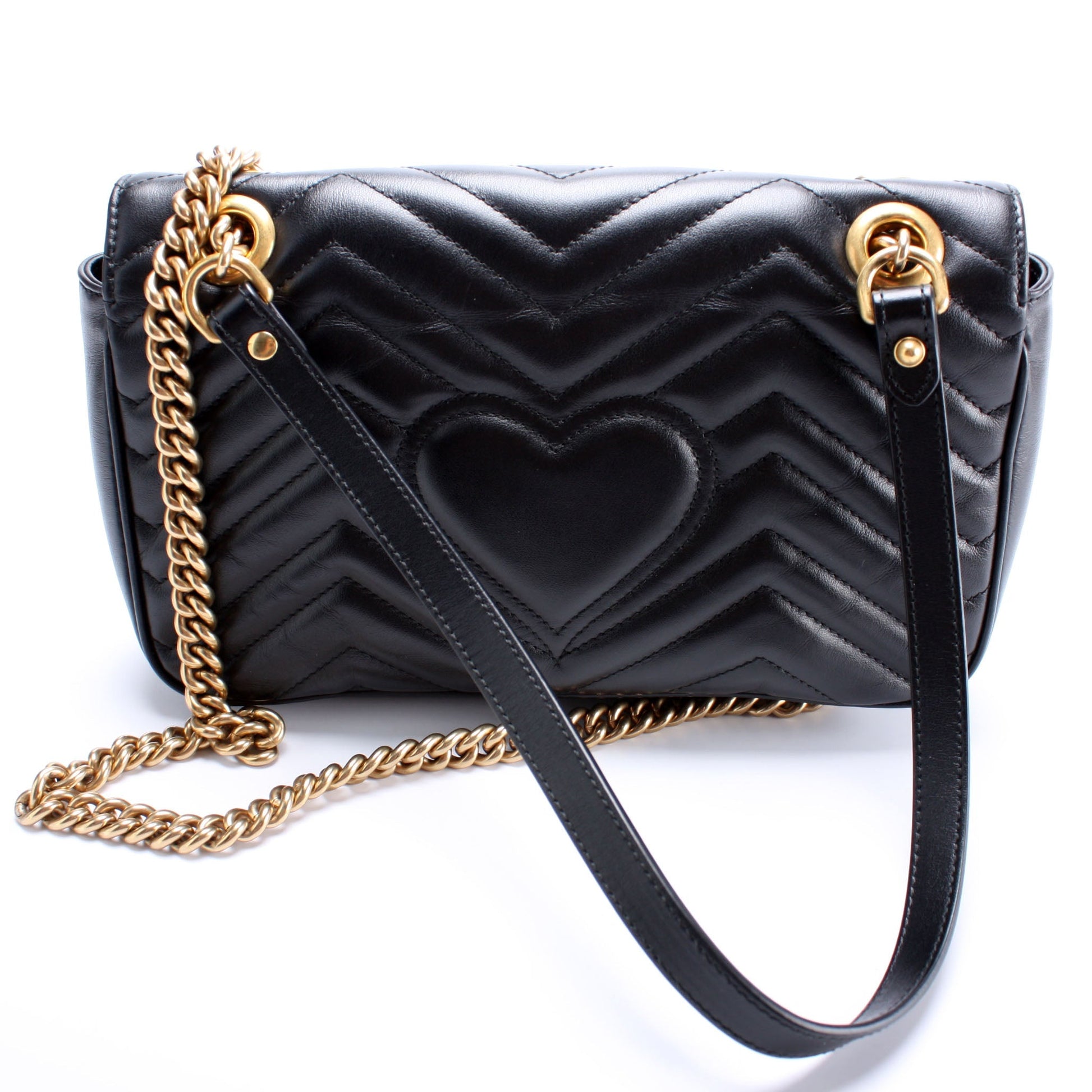 This Gucci Marmont Shoulder Small Flapis eye catching bag. The exterior is in the classic Gucci Marmont leather.