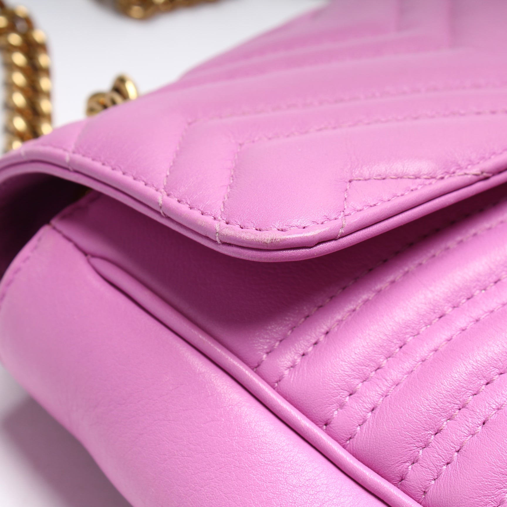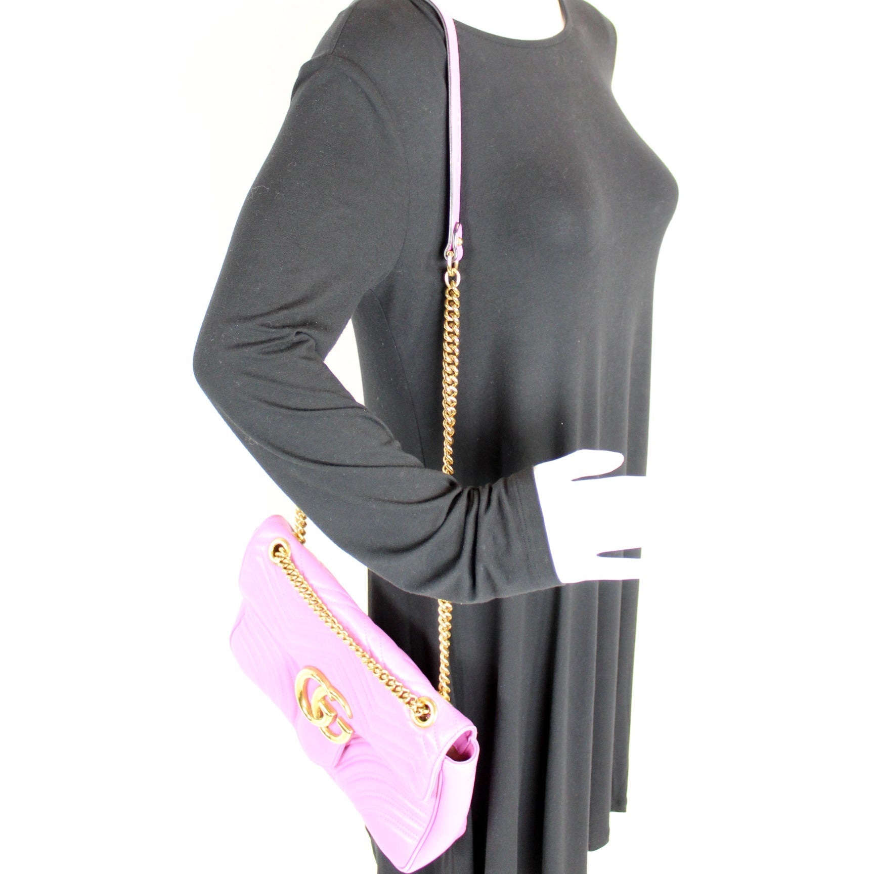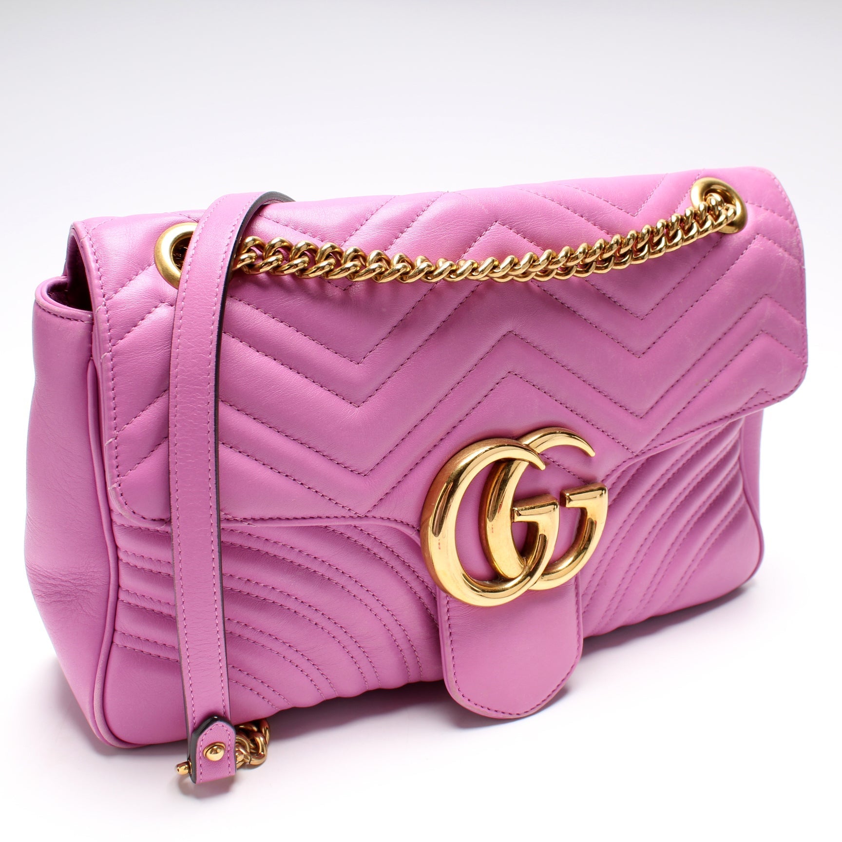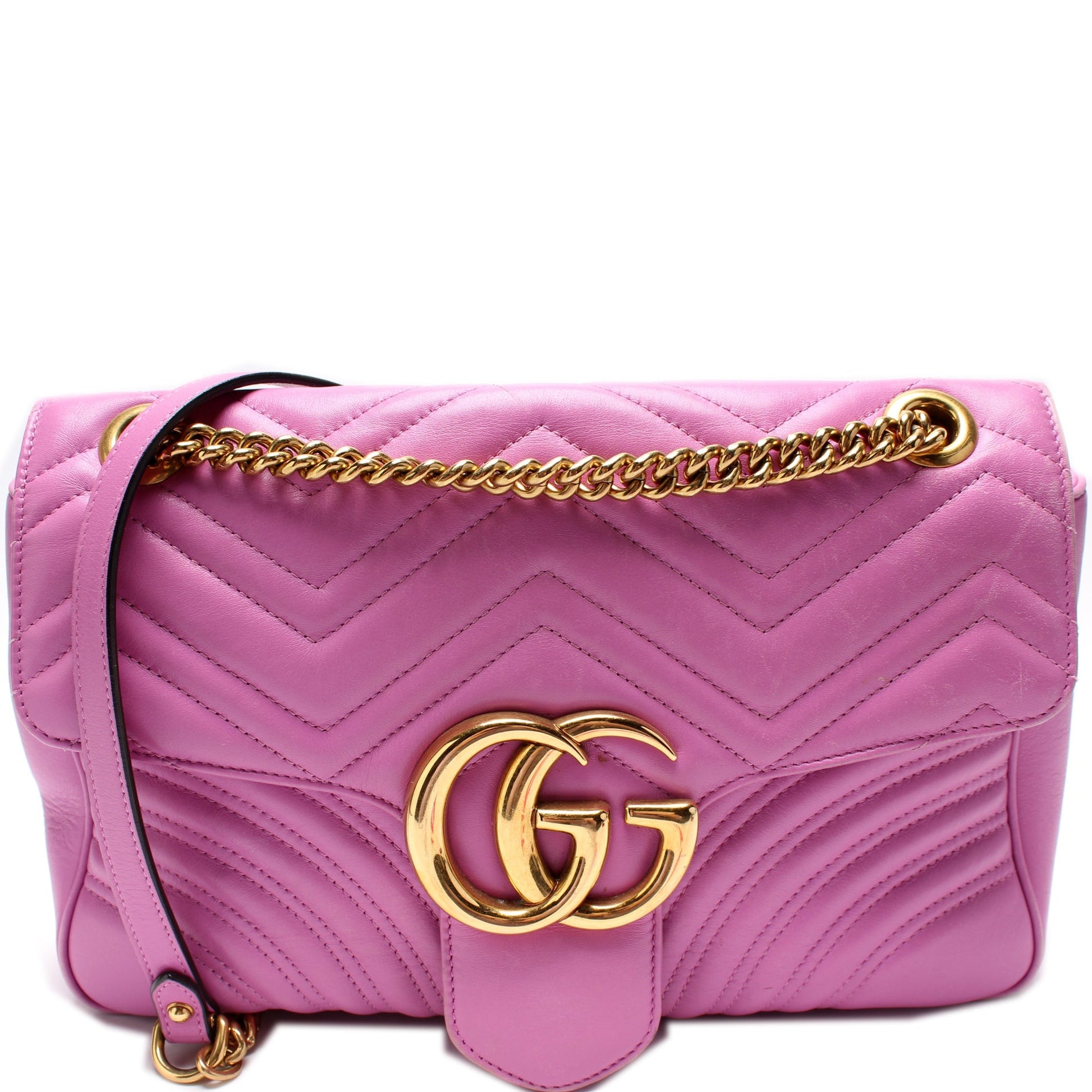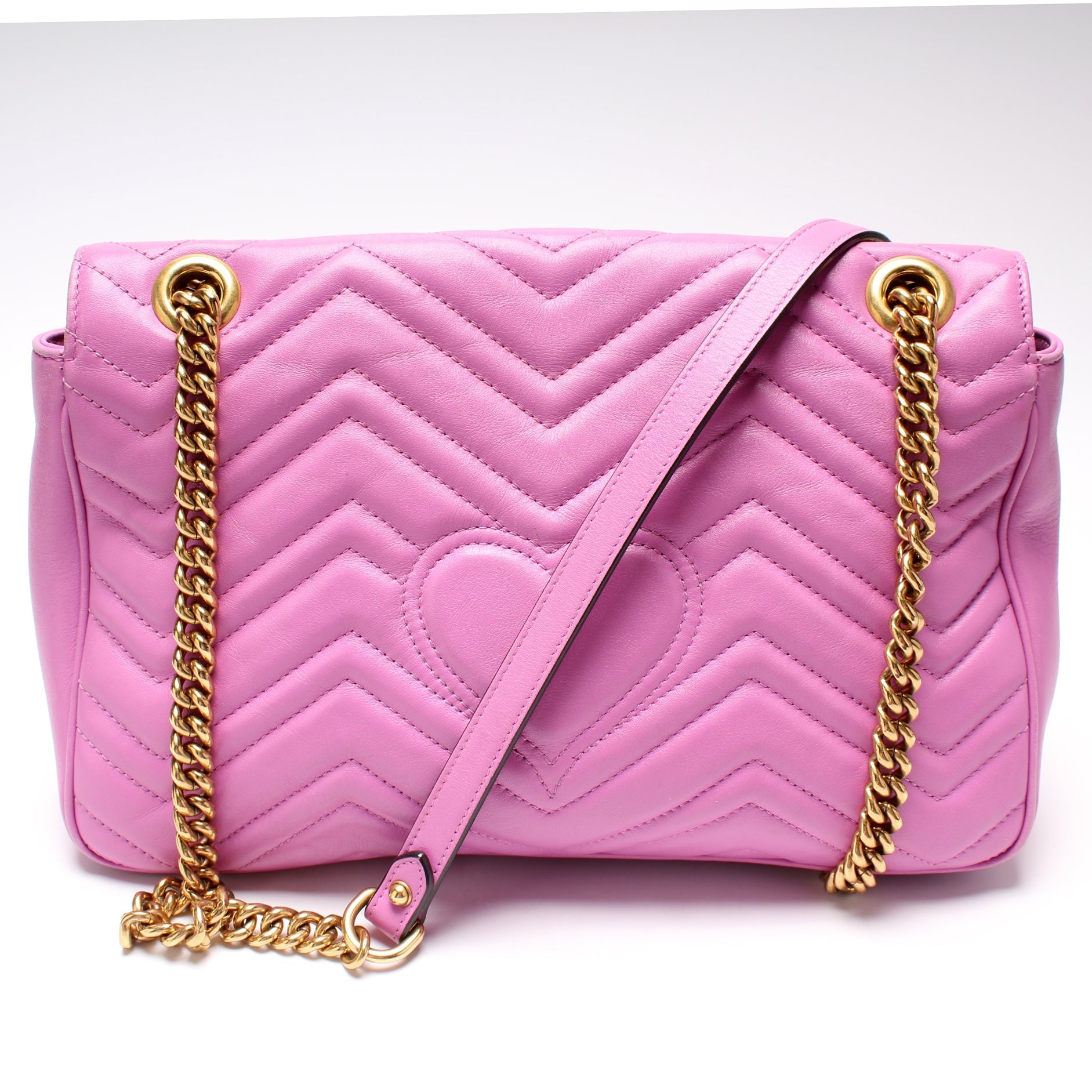 This Gucci Marmont Shoulder Mediumis eye catching bag. The exterior is in the classic Gucci Marmont leather.